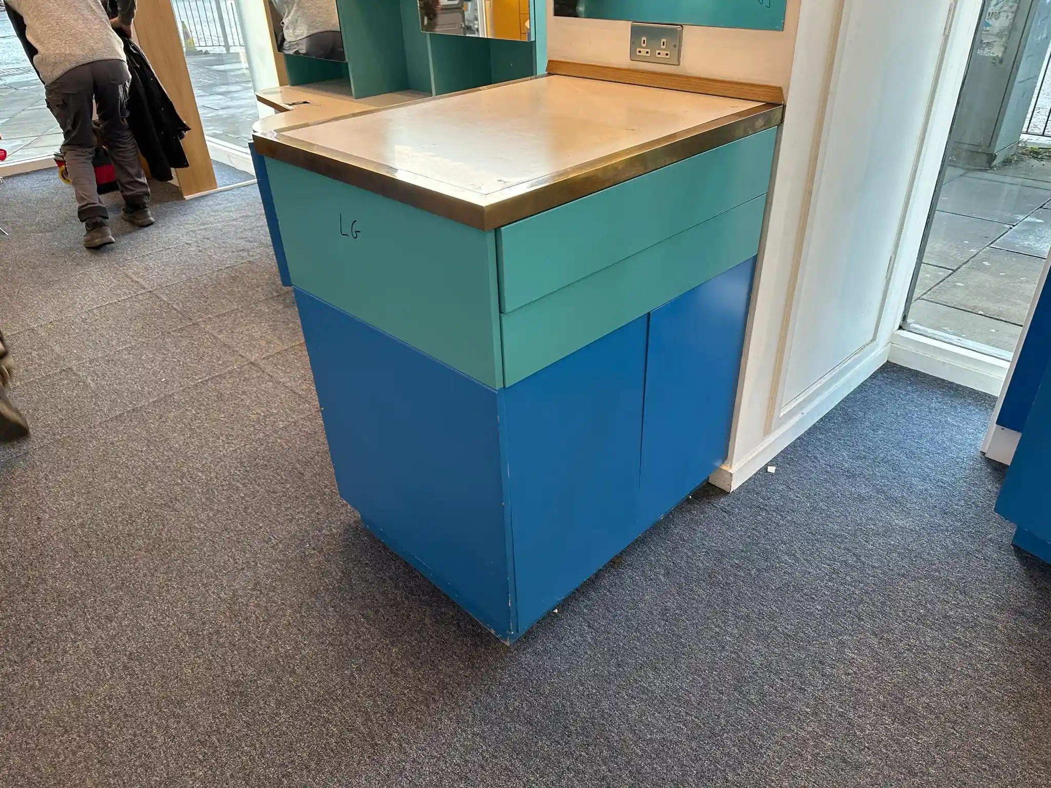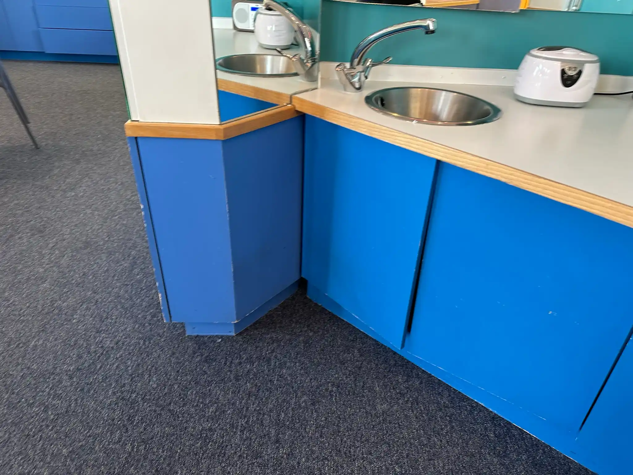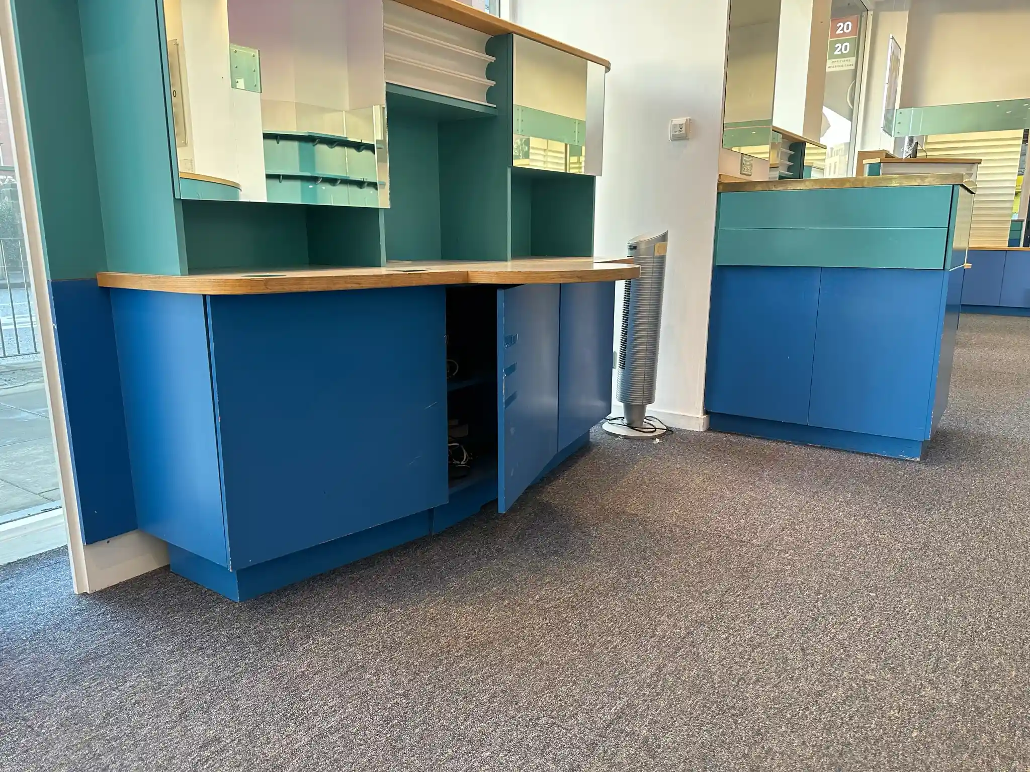 The project mainly involved changing the colours from yellow to Farrow & Ball No. 277 Dimpse, and from blue to Farrow & Ball No. 272 Plummett.