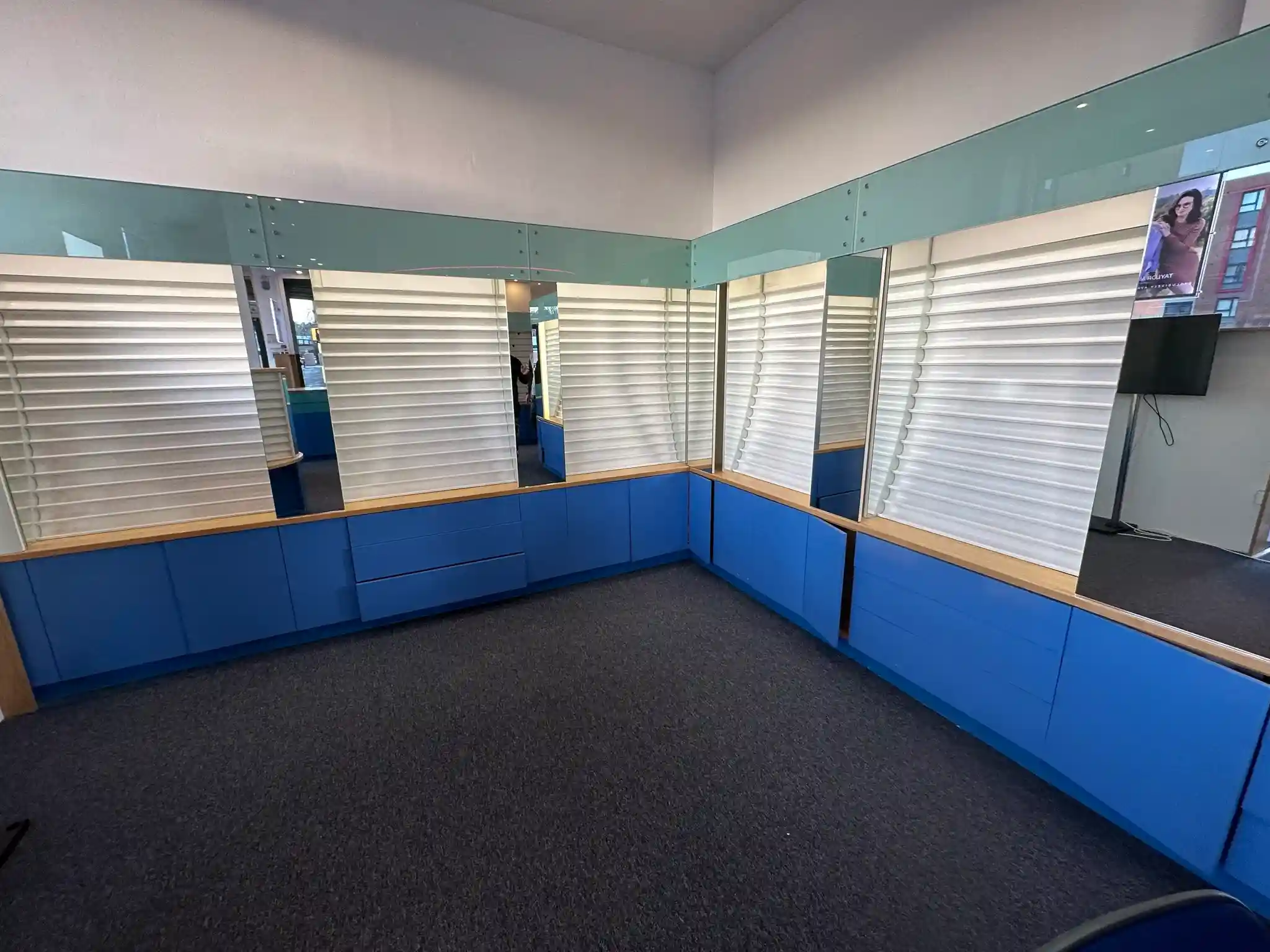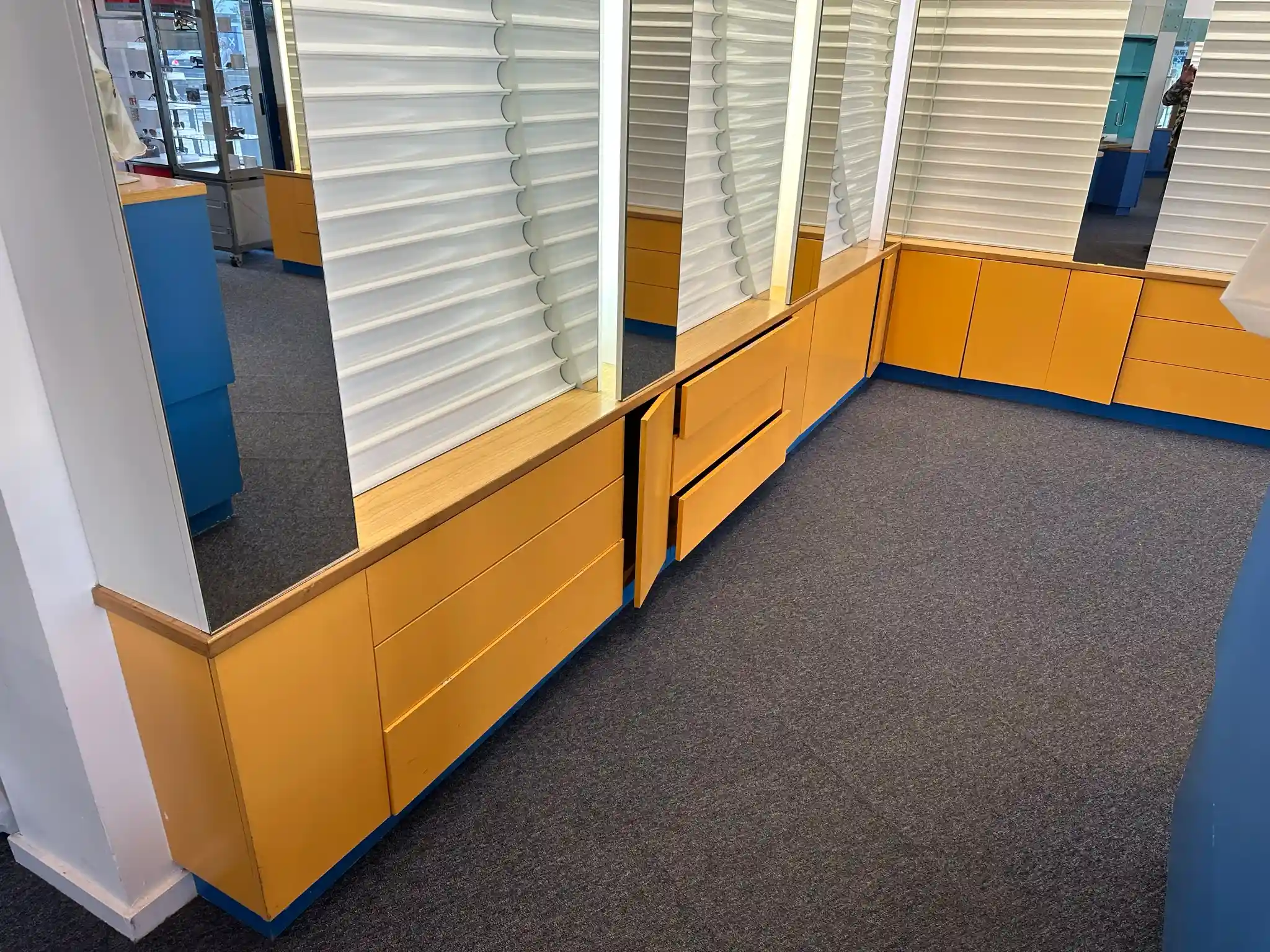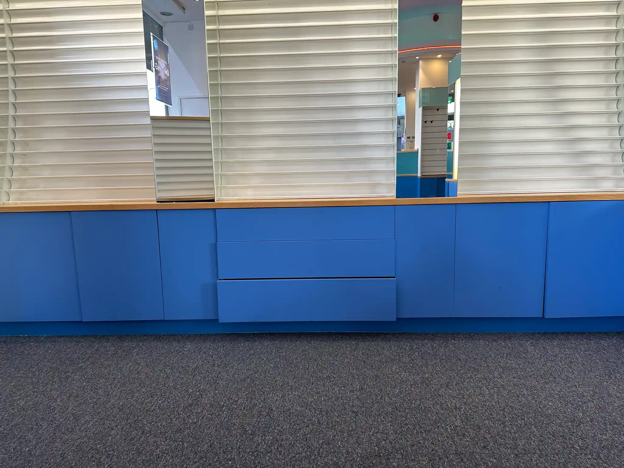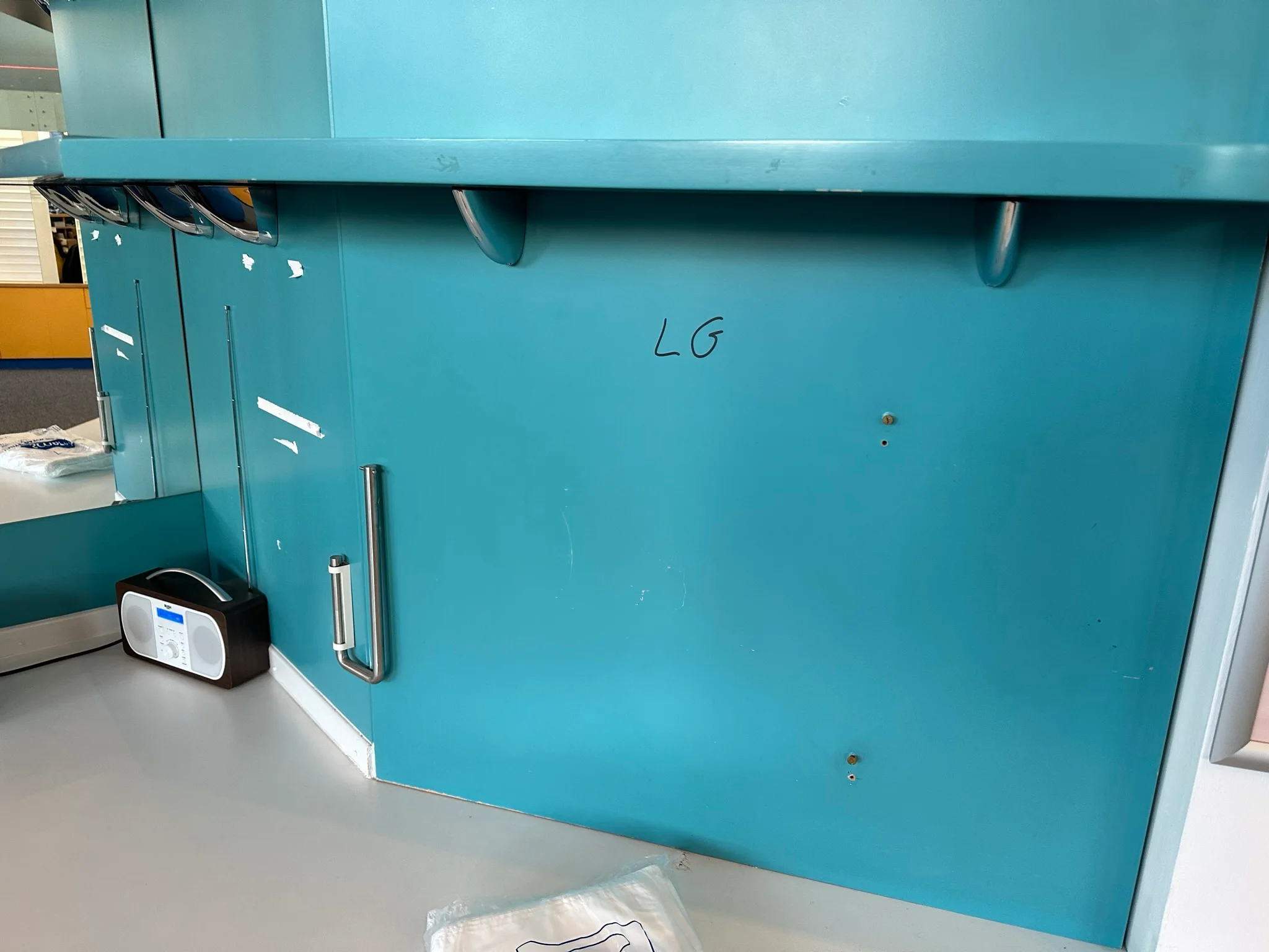 The project mainly involved changing the colours from yellow to Farrow & Ball No. 277 Dimpse, and from blue to Farrow & Ball No. 272 Plummett.