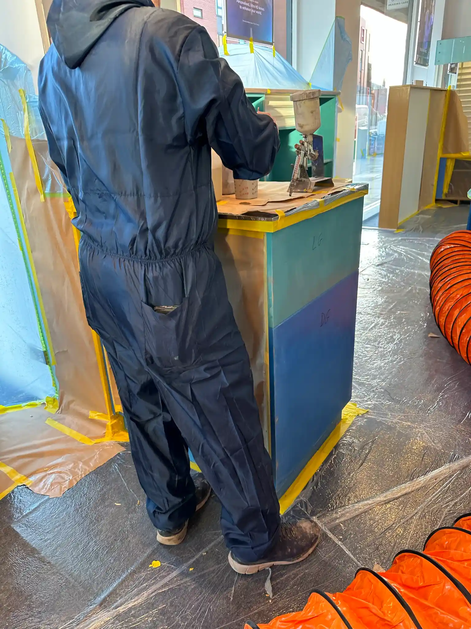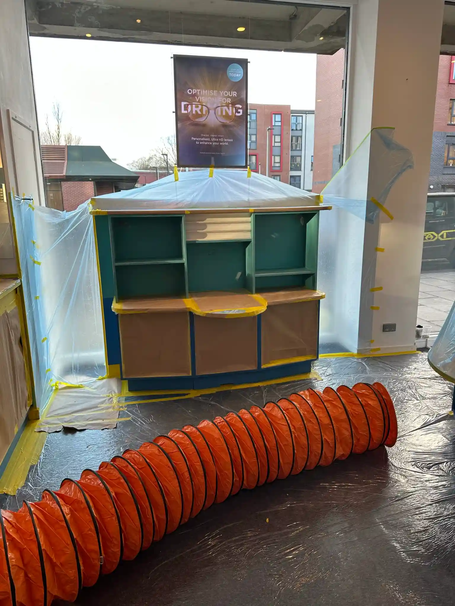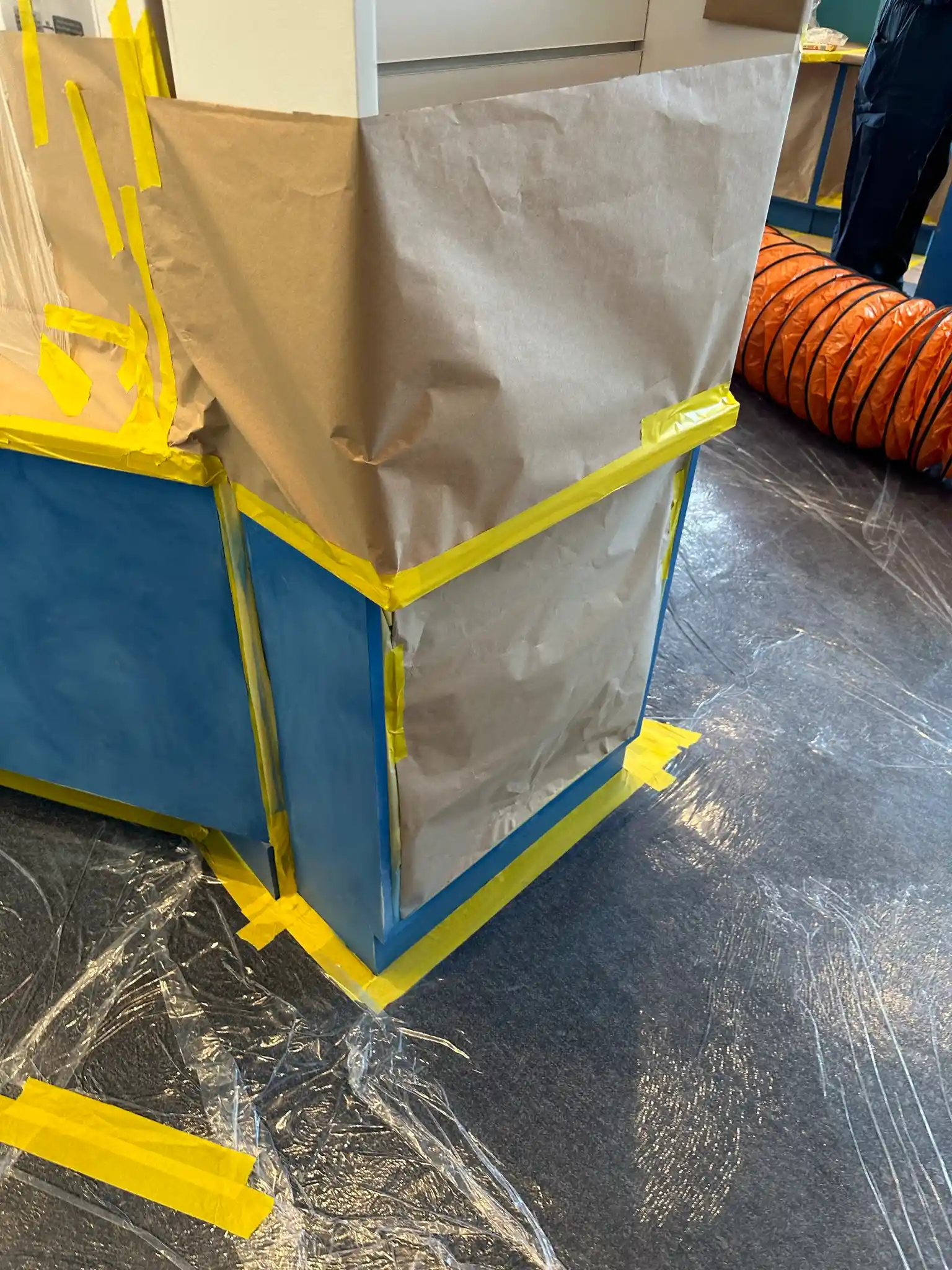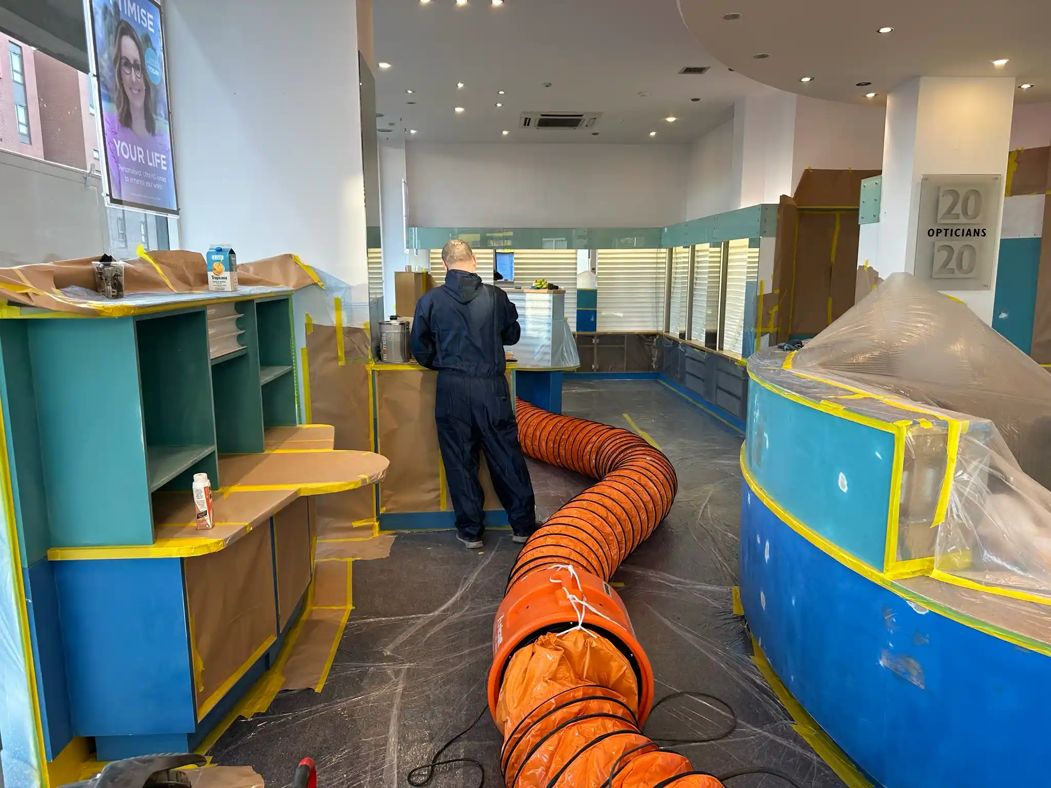 Once the preparation was done, we set up the ventilation system and began the surface preparation, which involved filling and sanding — this took a significant amount of time.