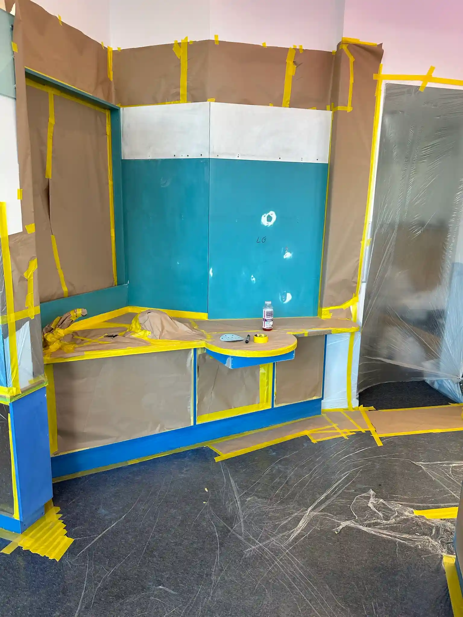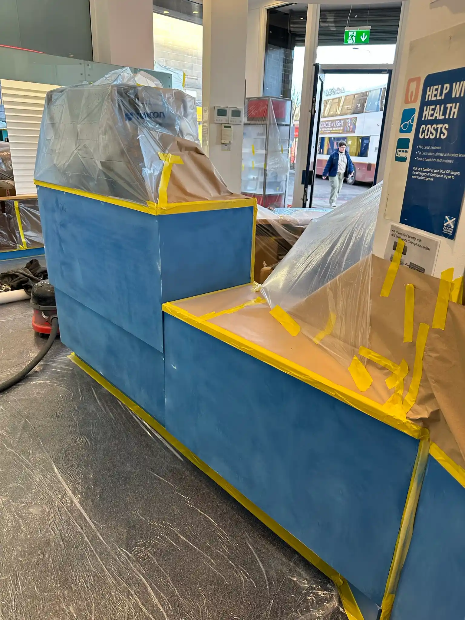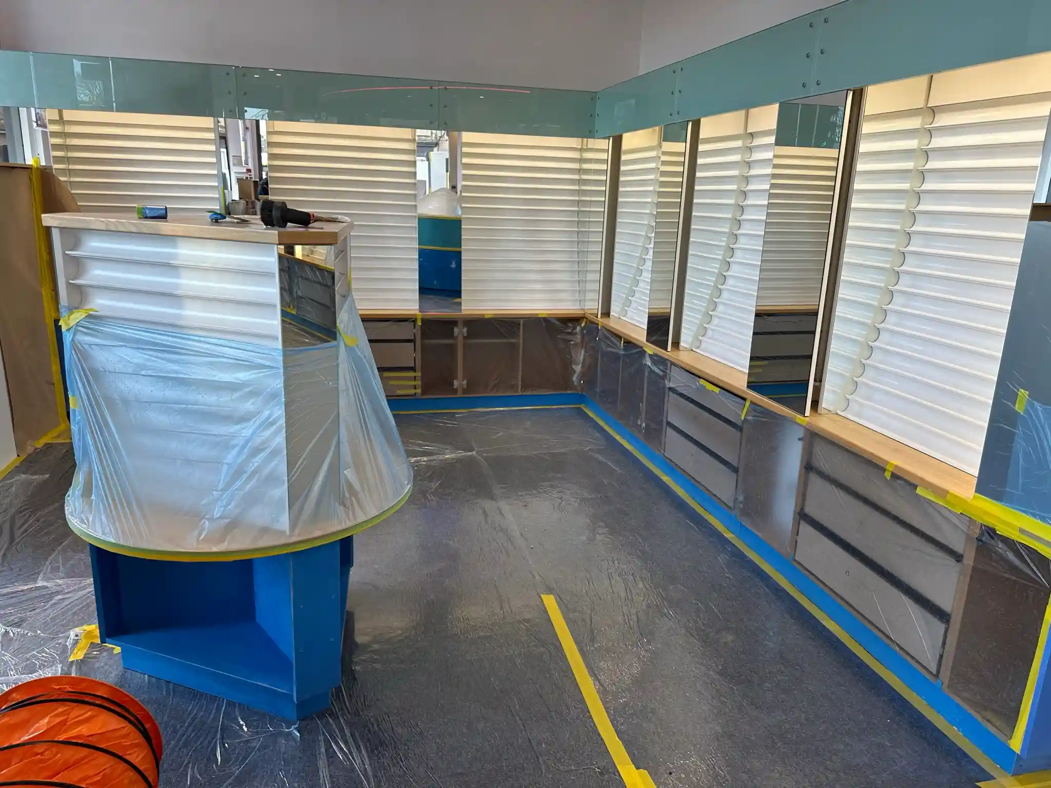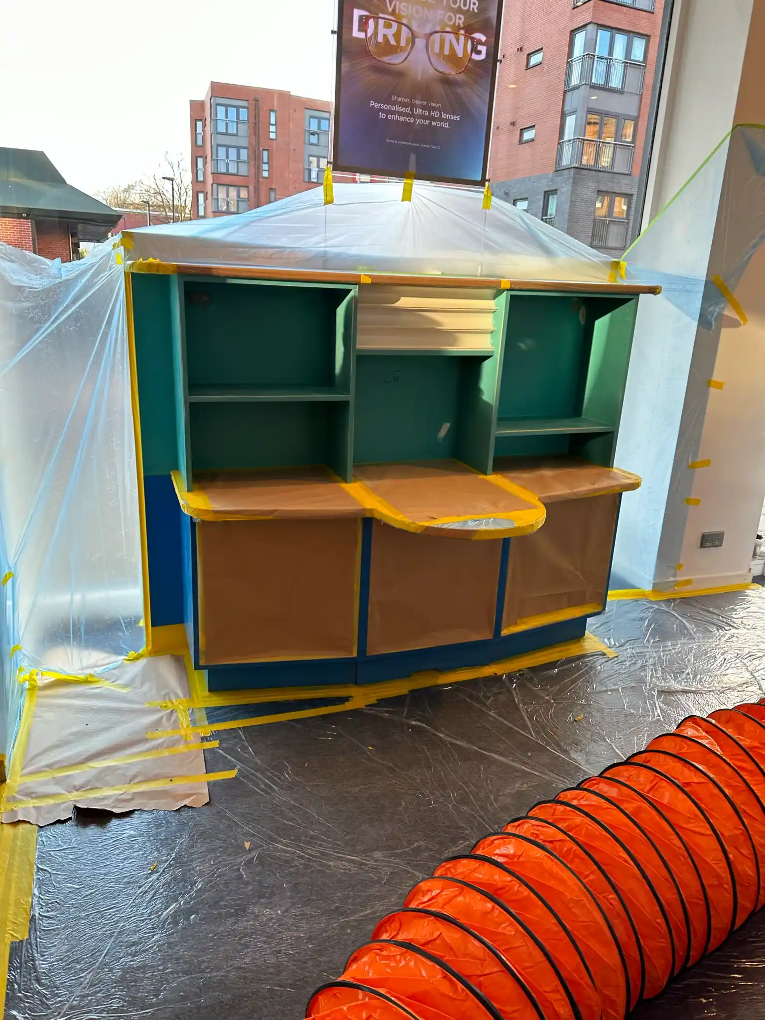 Once the preparation was done, we set up the ventilation system and began the surface preparation, which involved filling and sanding — this took a significant amount of time.