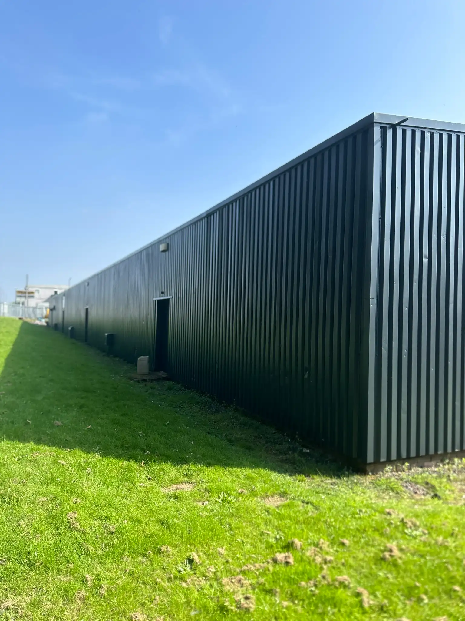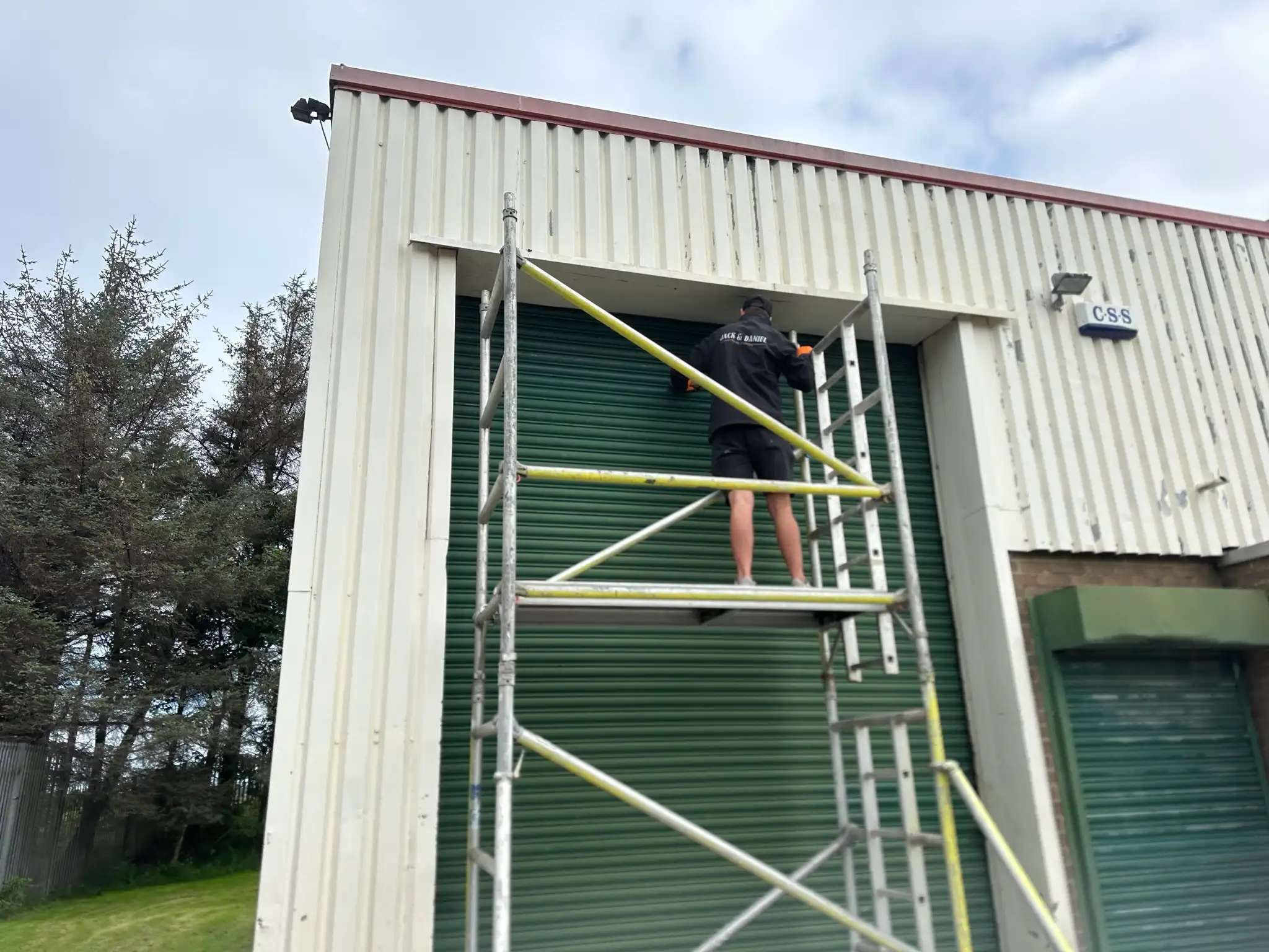 Once the surface was cleaned and free from loose paint, we proceeded with the spray application of a high-performance cladding coating system, designed to adhere well even in more demanding conditions. The paint was selected not only for its durability but also for its resistance to weathering, UV exposure, and temperature fluctuations—factors that are especially important for industrial units exposed to the elements.