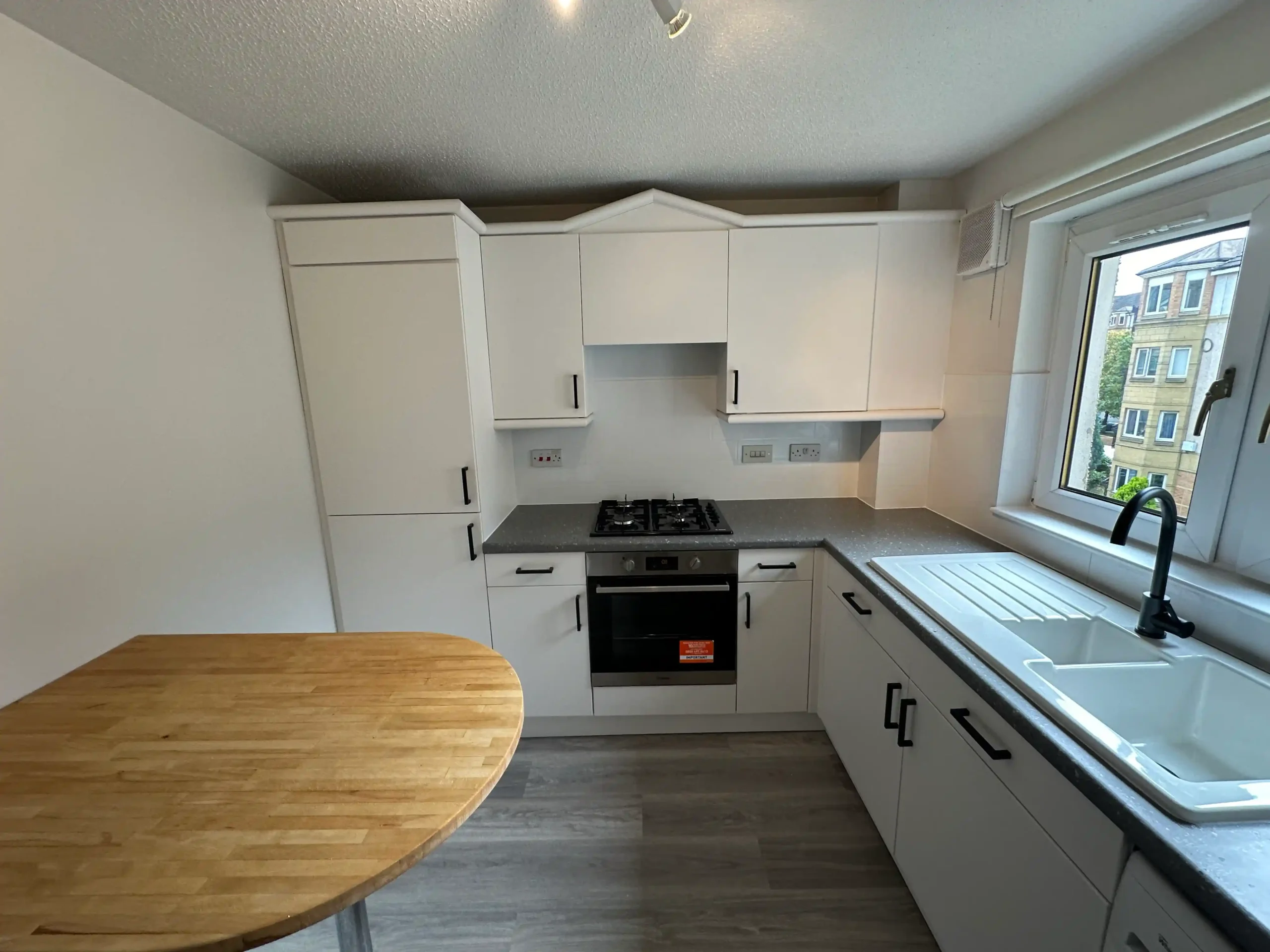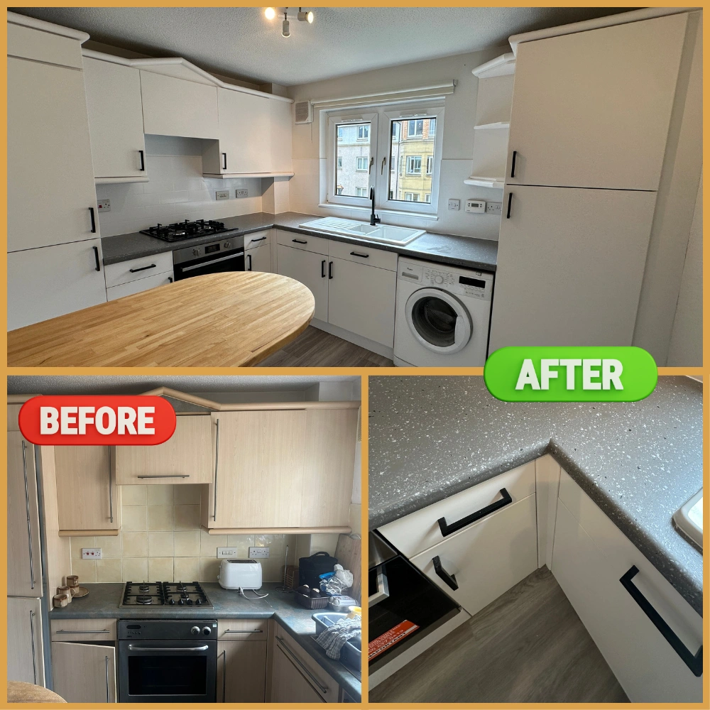 Flat Renovation in Haymarket, Edinburgh – Kitchen Makeover, Worktop Restoration, Flooring & Full Interior Painting