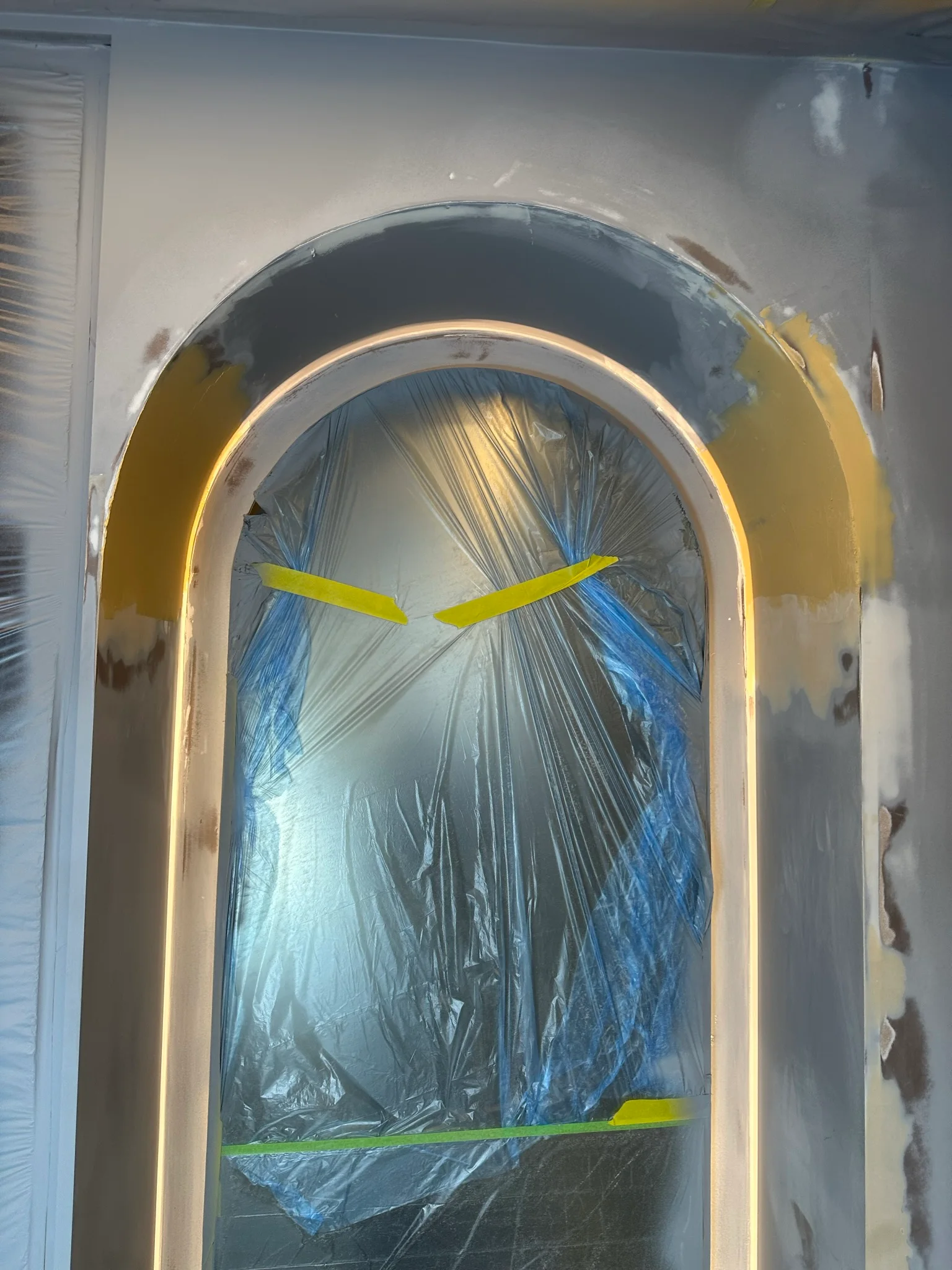 Additionally, we filled and painted the bathroom walls, along with the doors and frames.