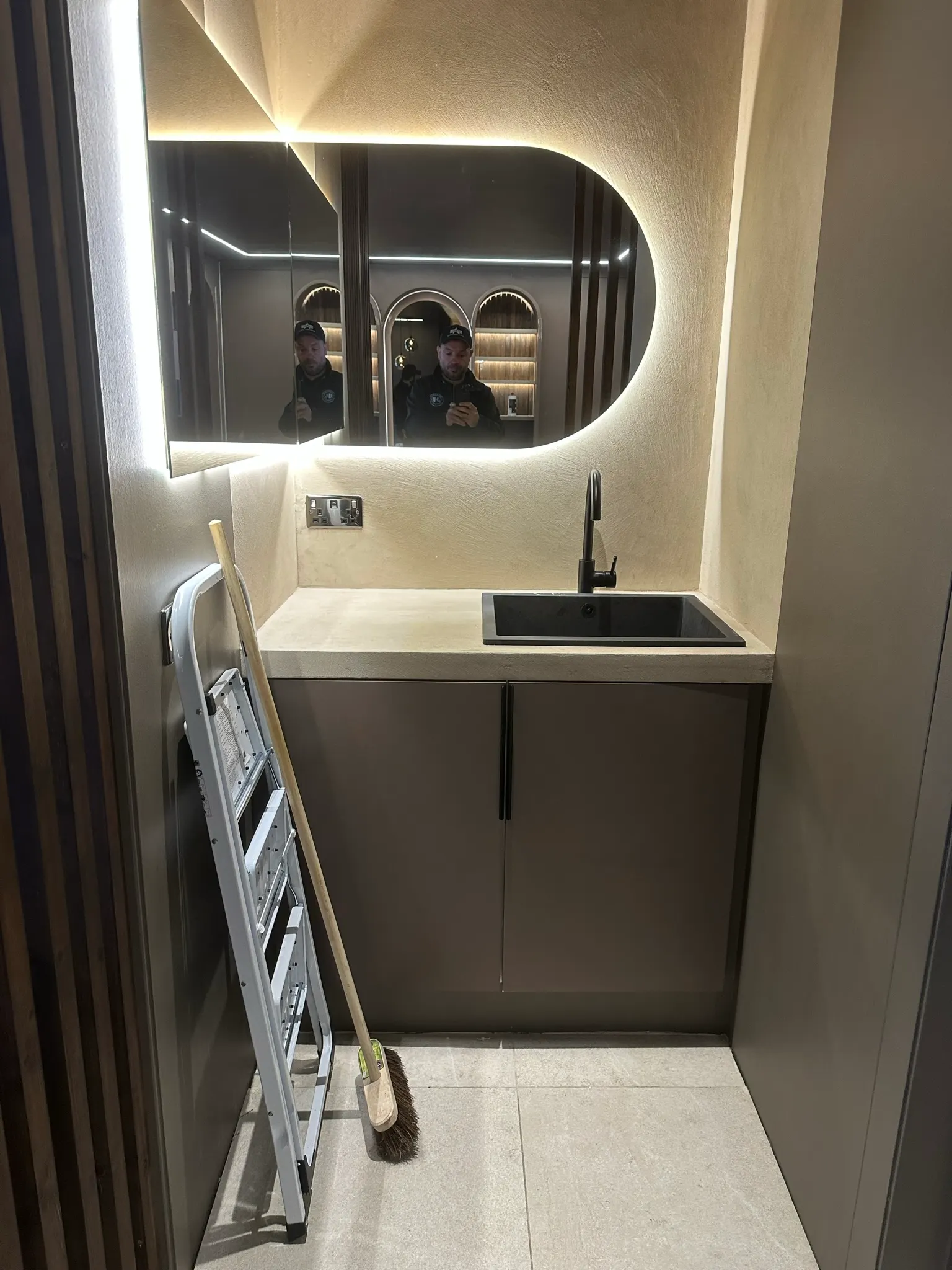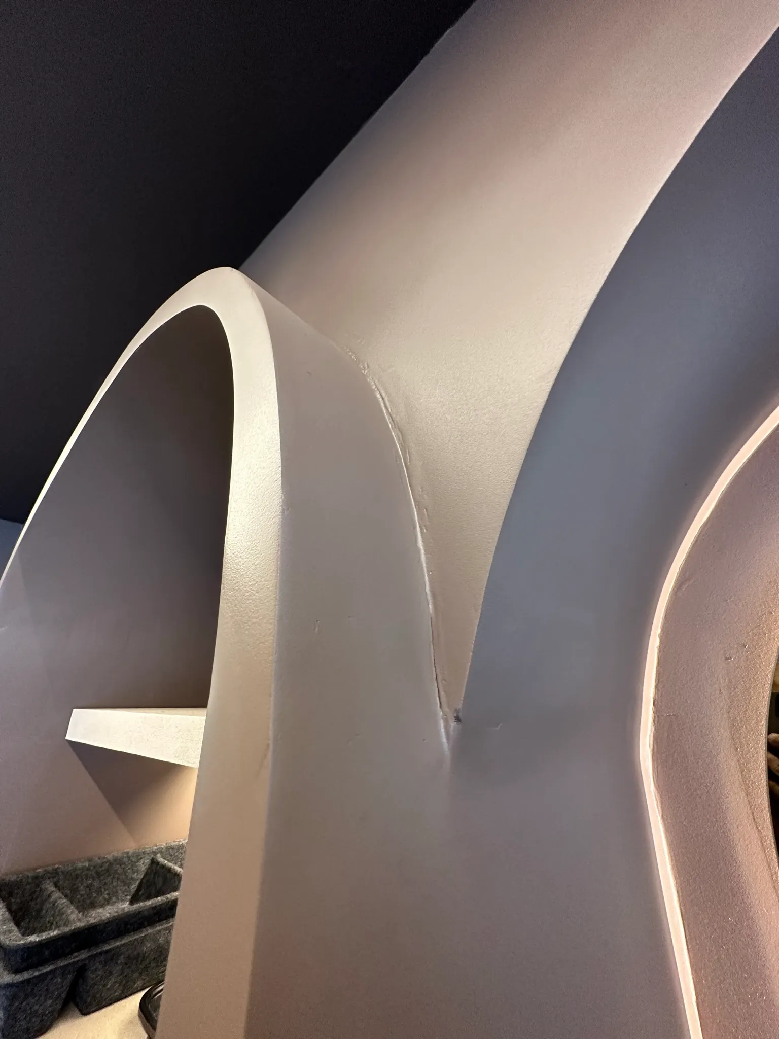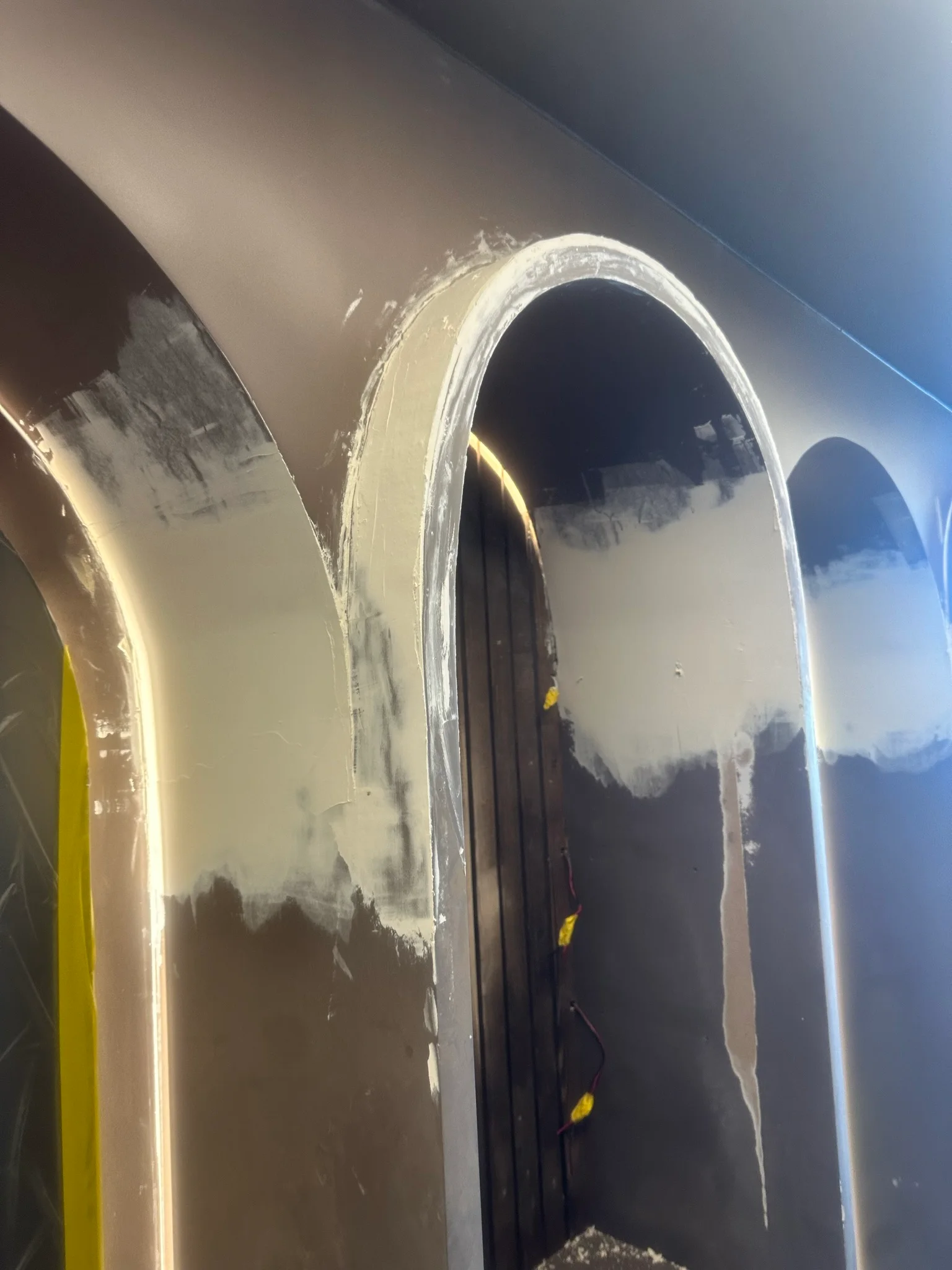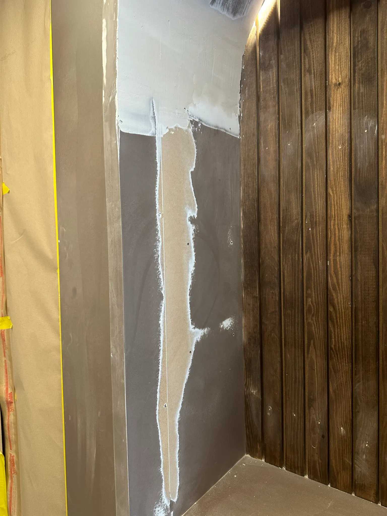 All gaps around each workstation were thoroughly prepared and filled, using a special corner tape for a smooth and durable finish.