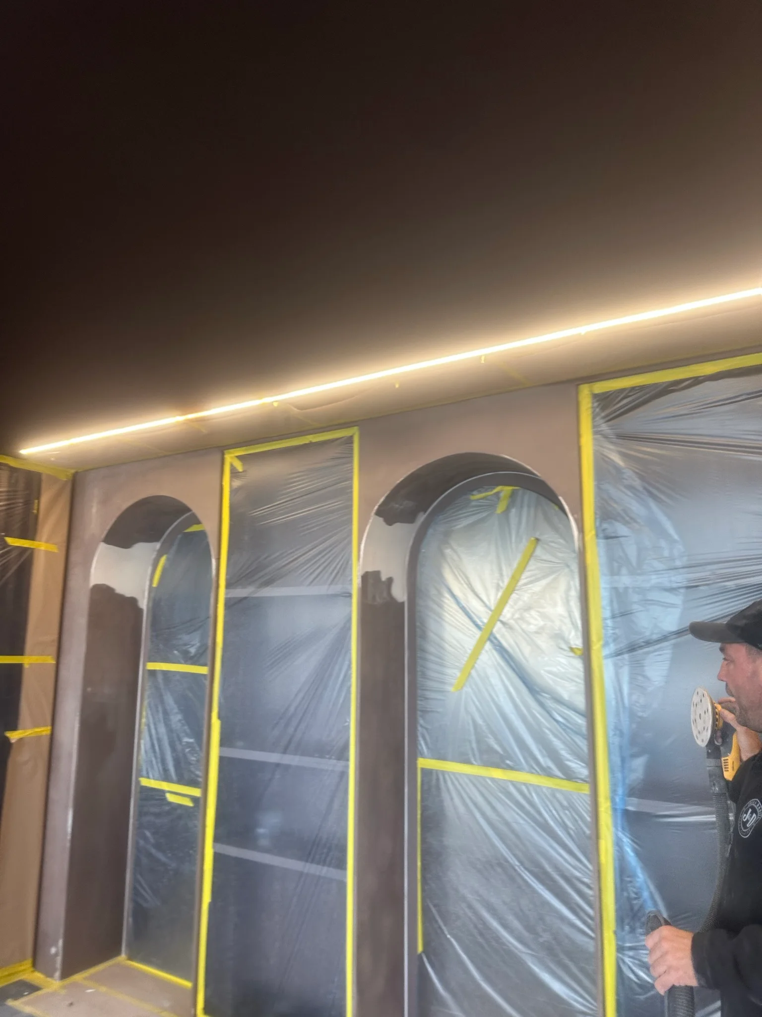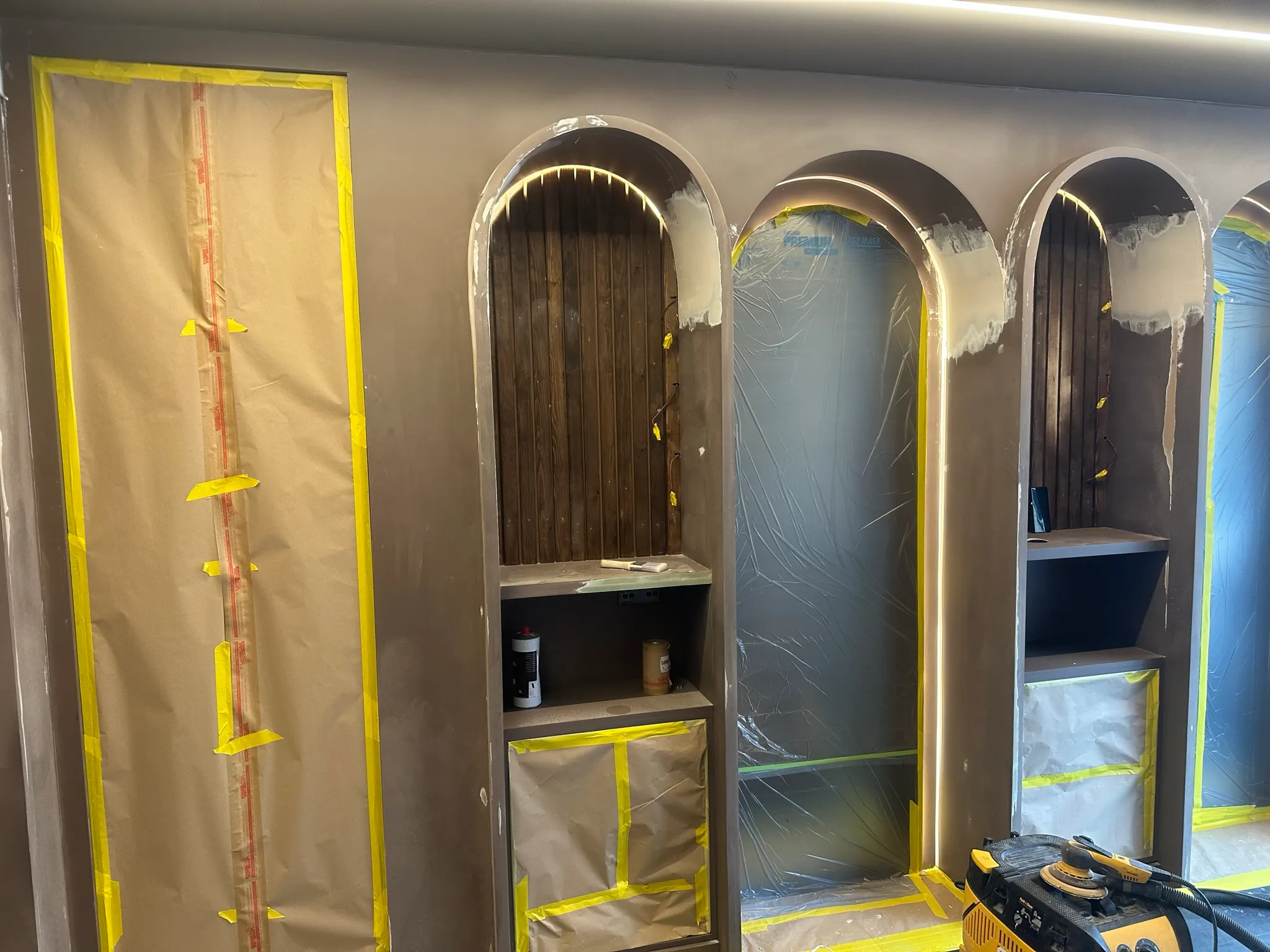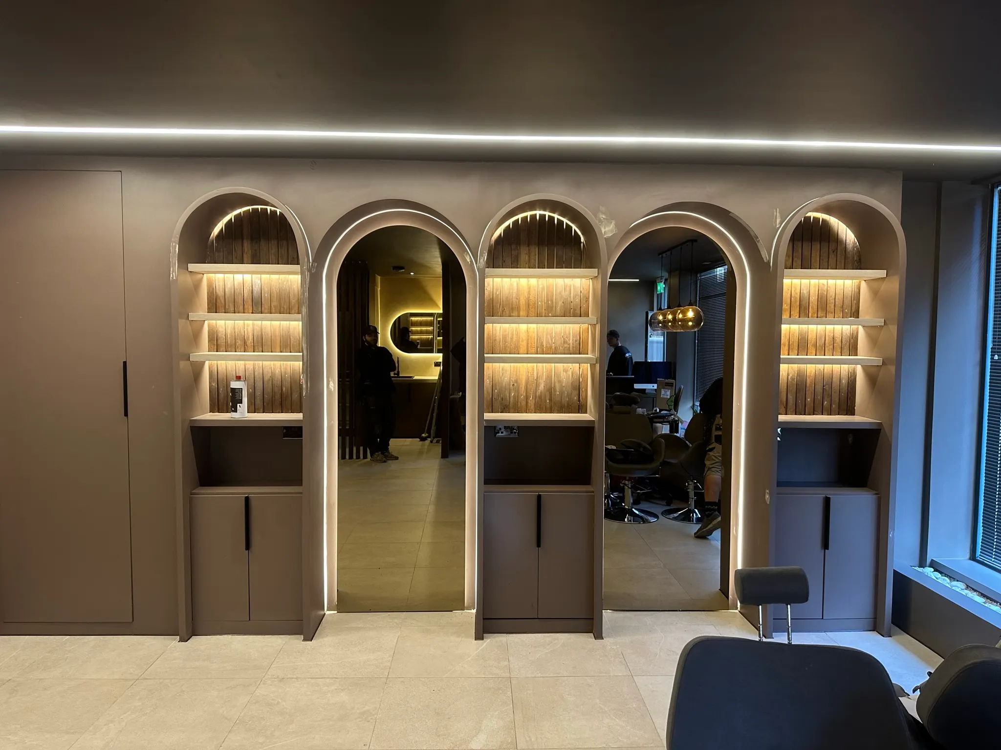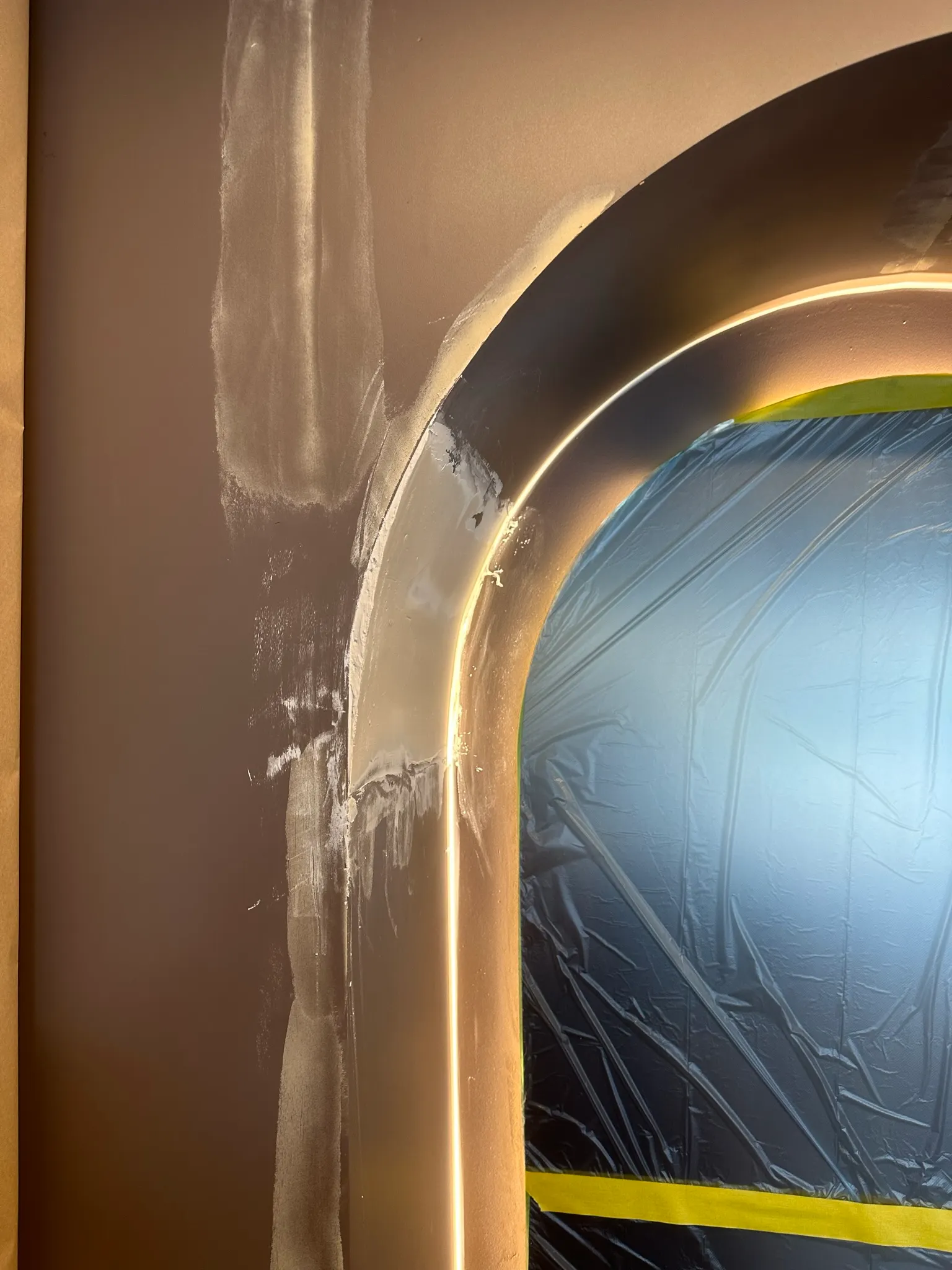 All gaps around each workstation were thoroughly prepared and filled, using a special corner tape for a smooth and durable finish.