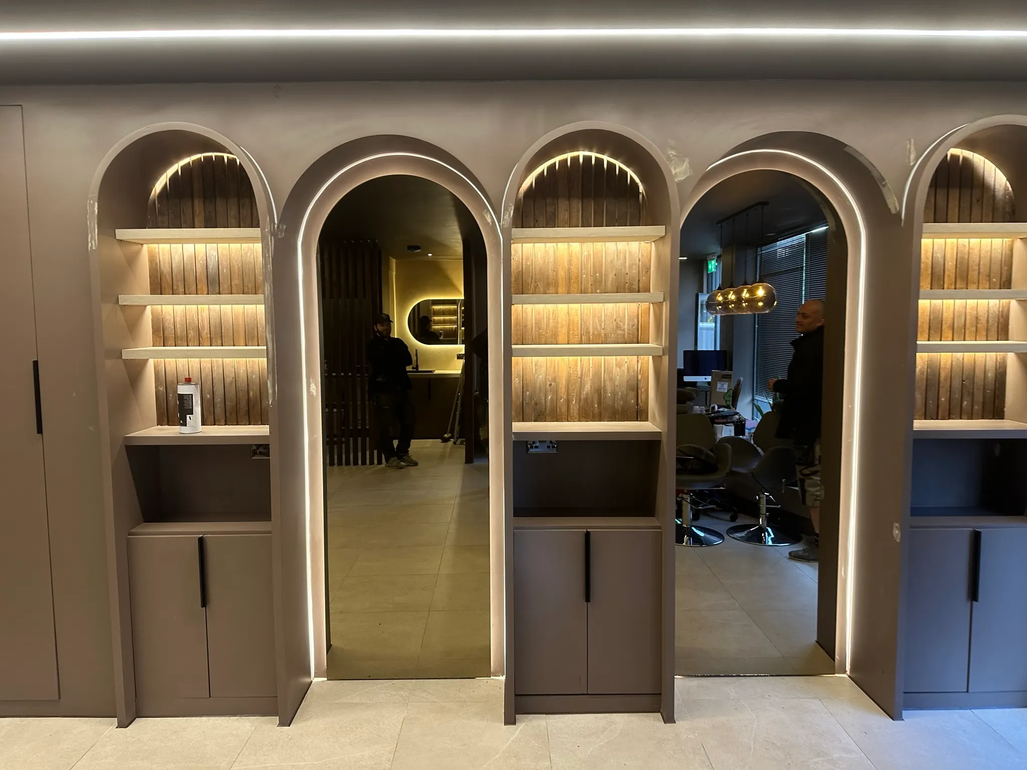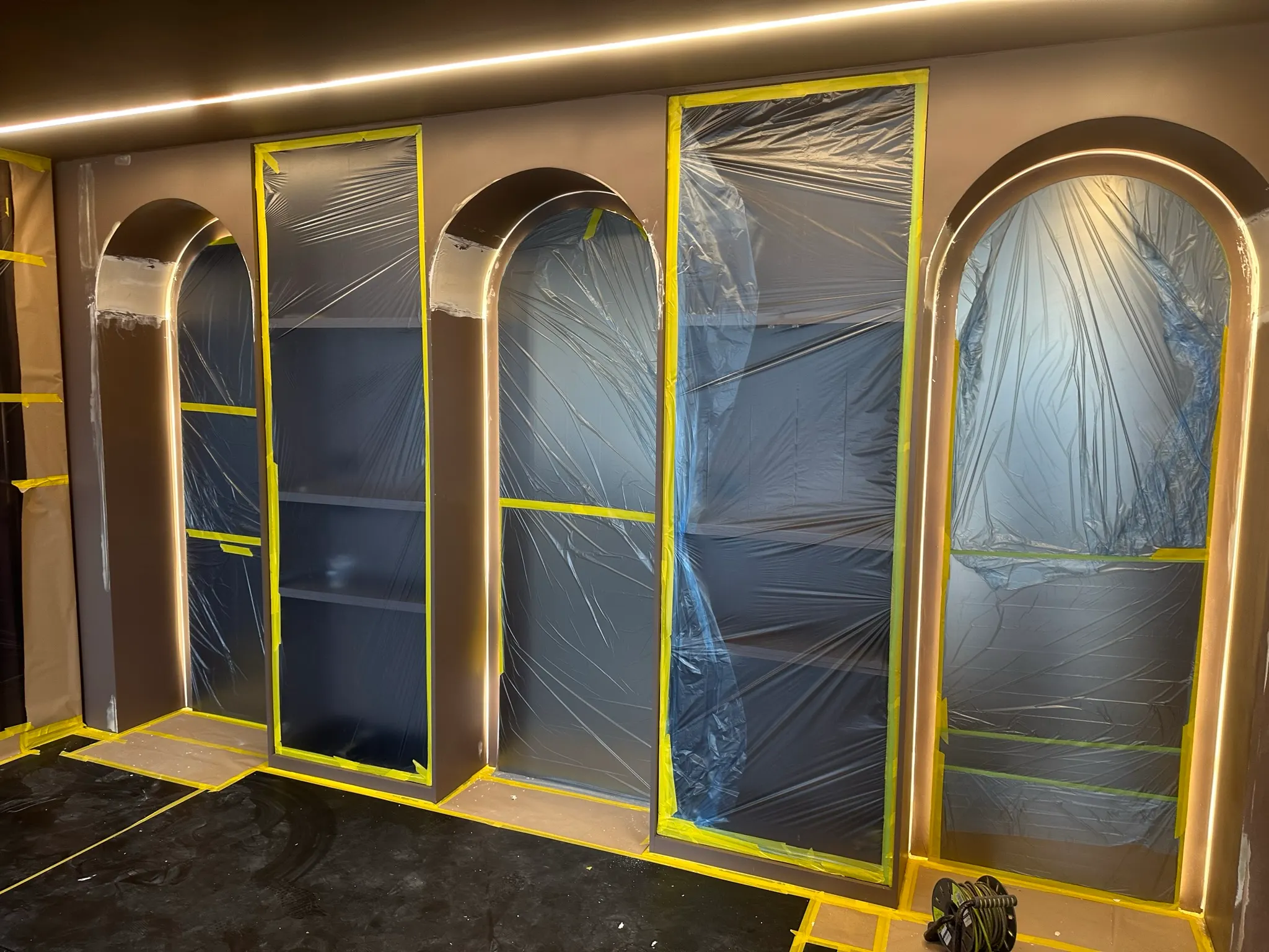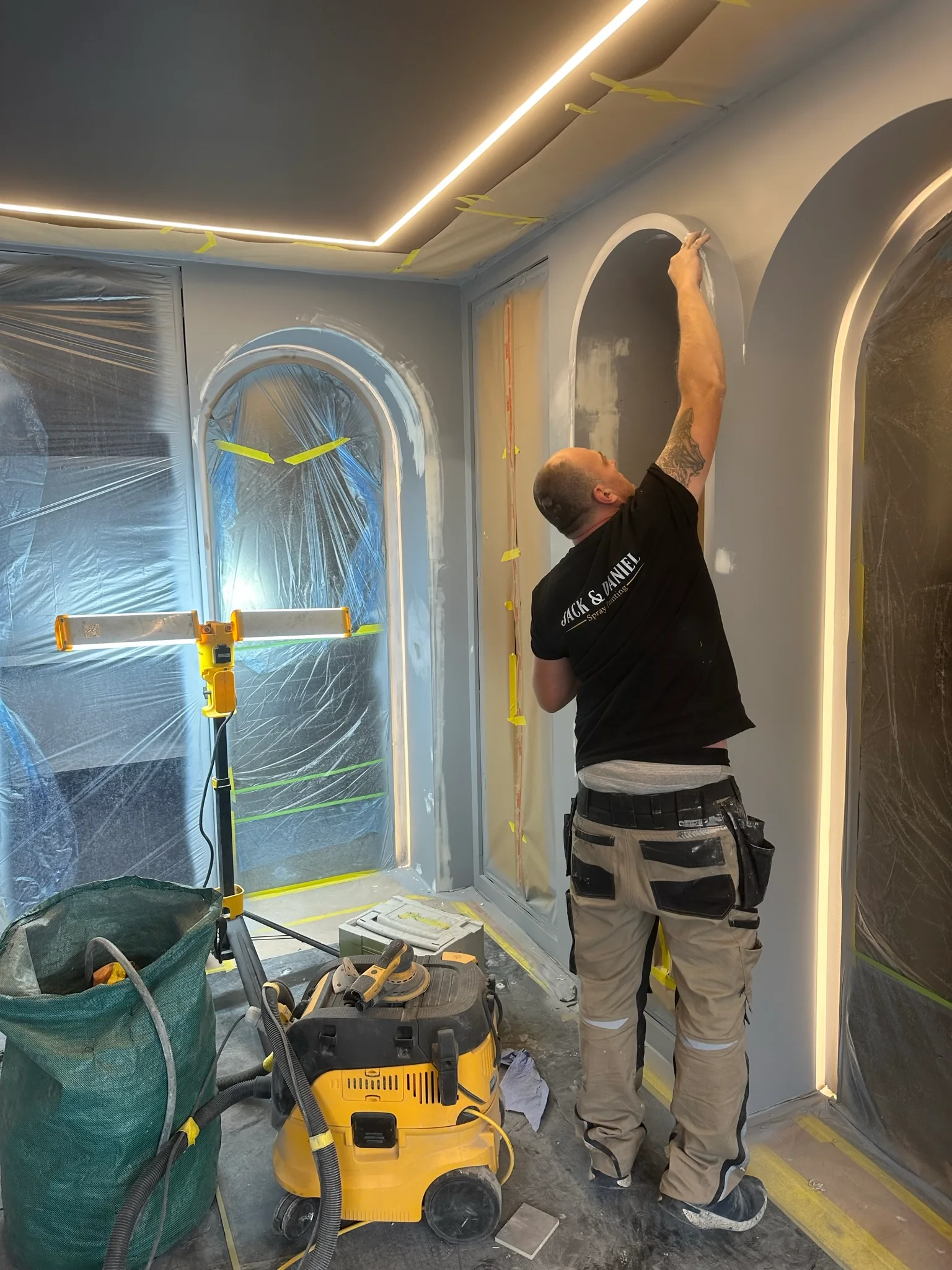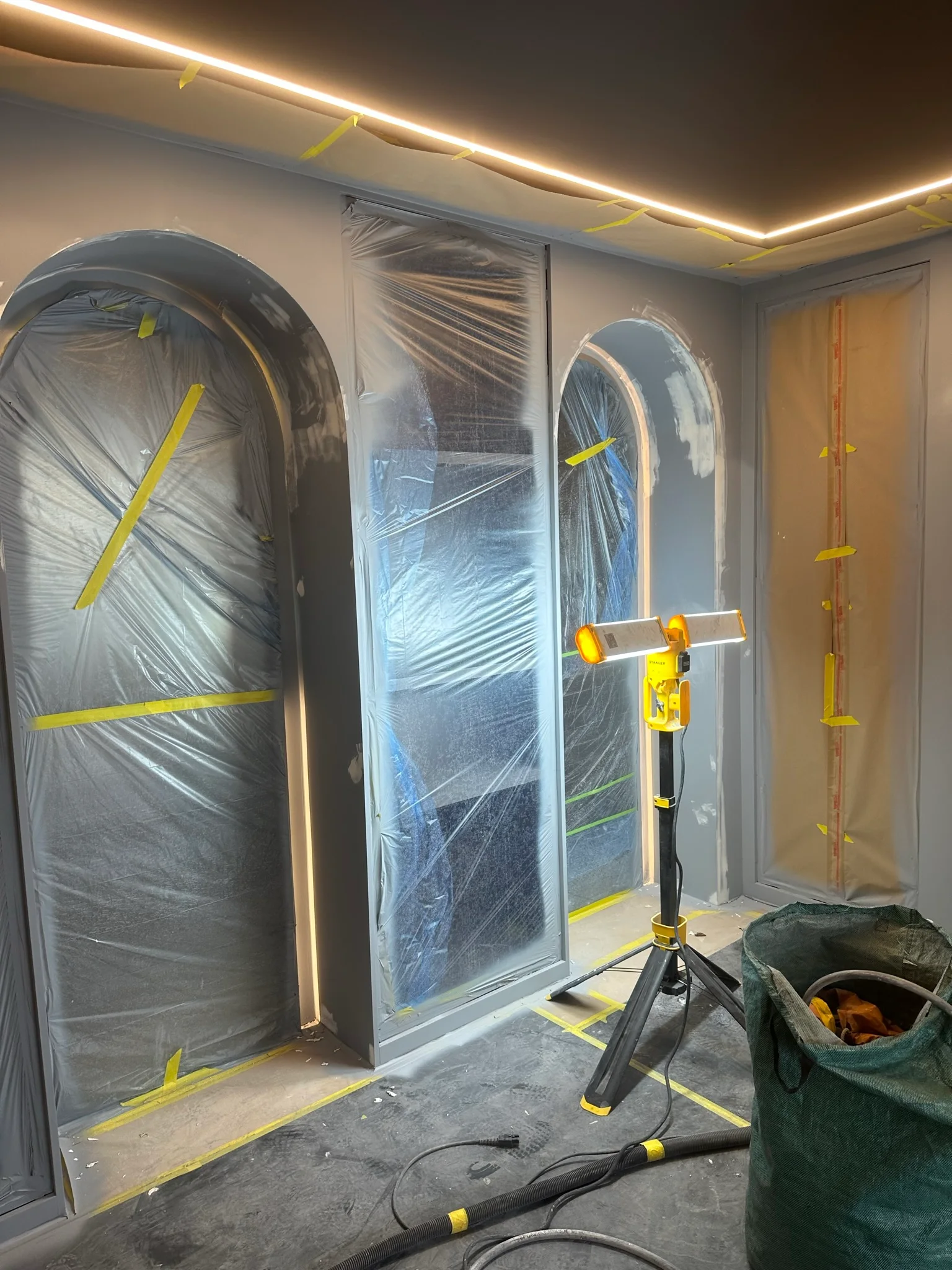 All gaps around each workstation were thoroughly prepared and filled, using a special corner tape for a smooth and durable finish.