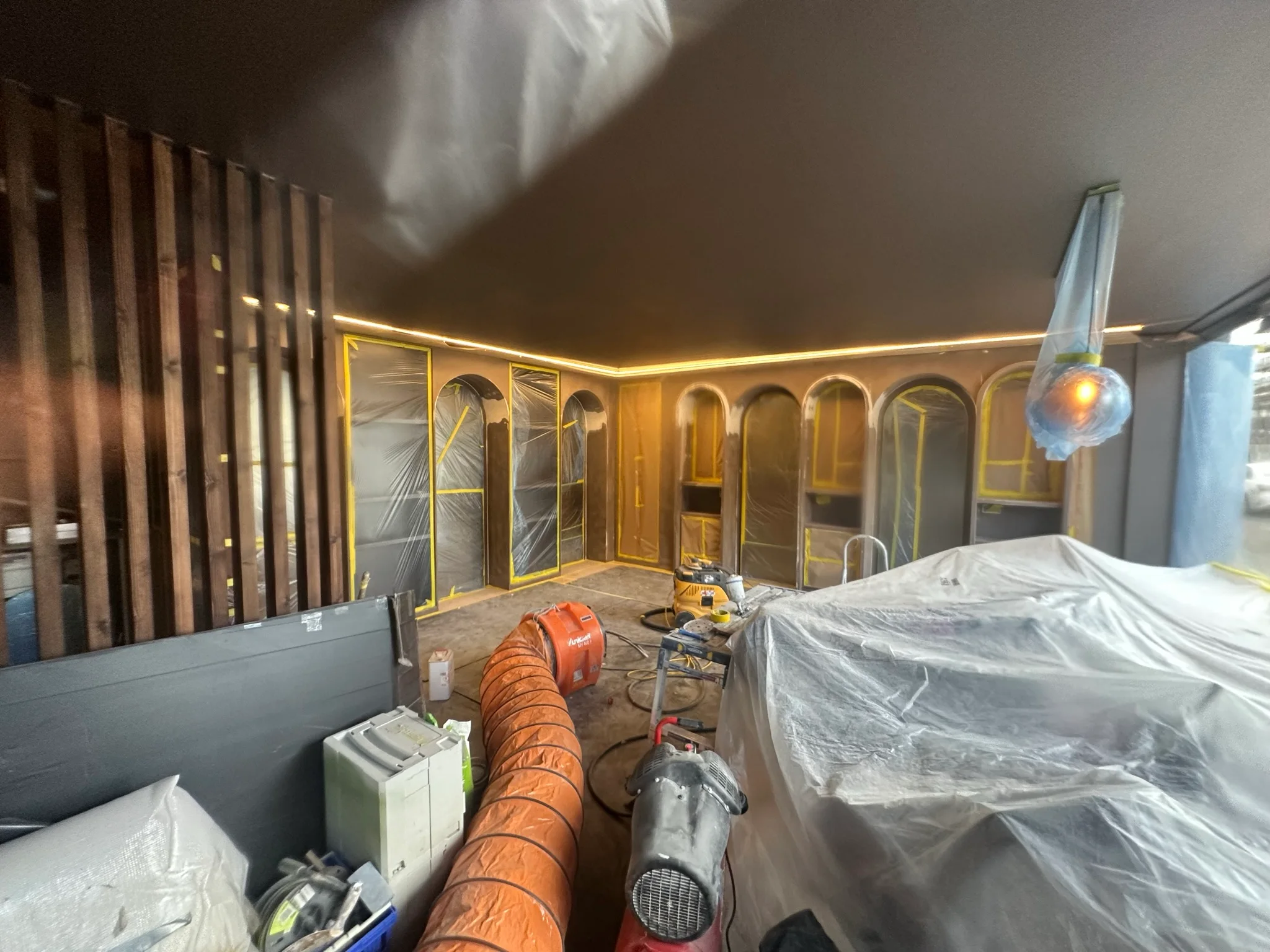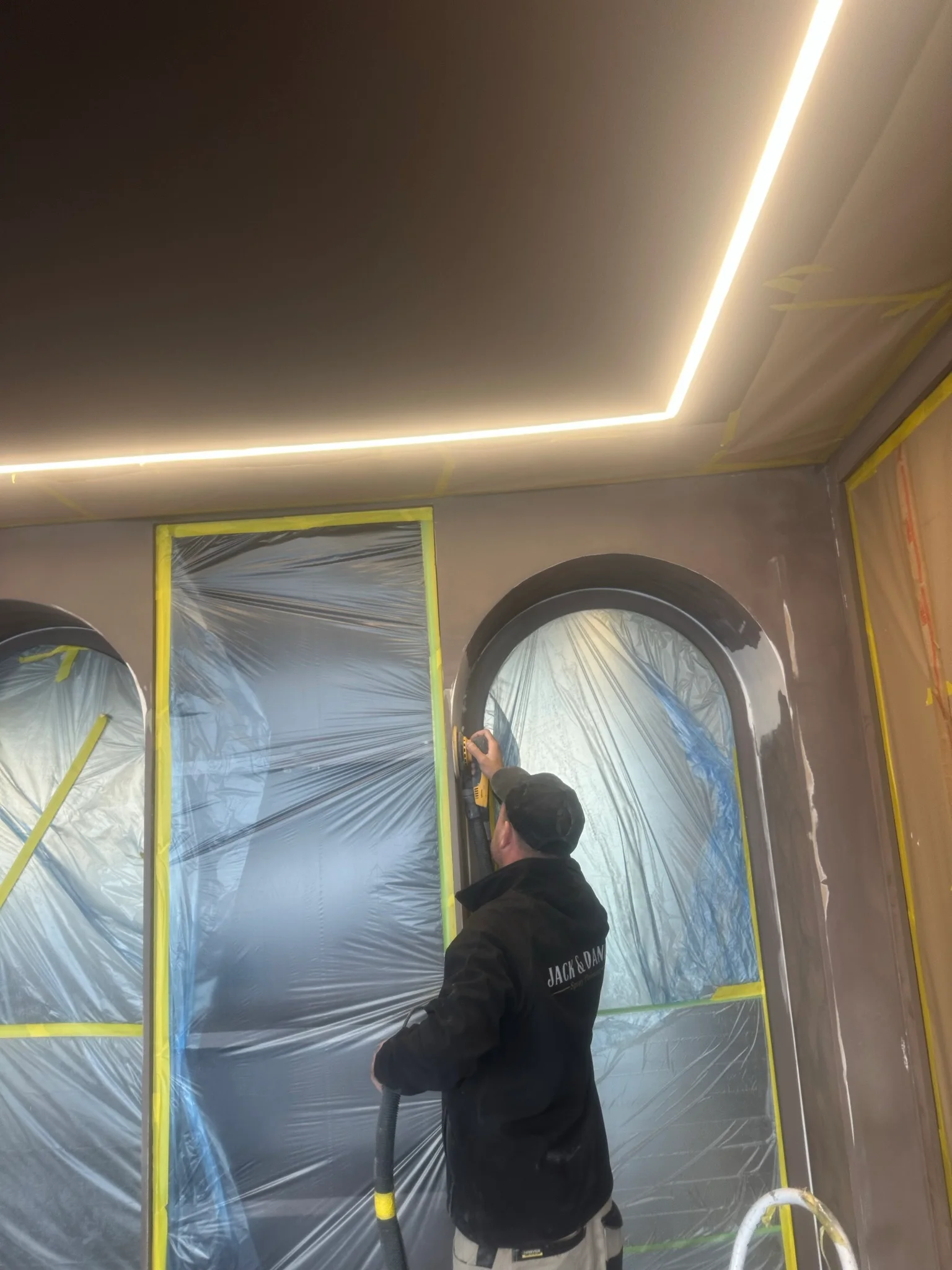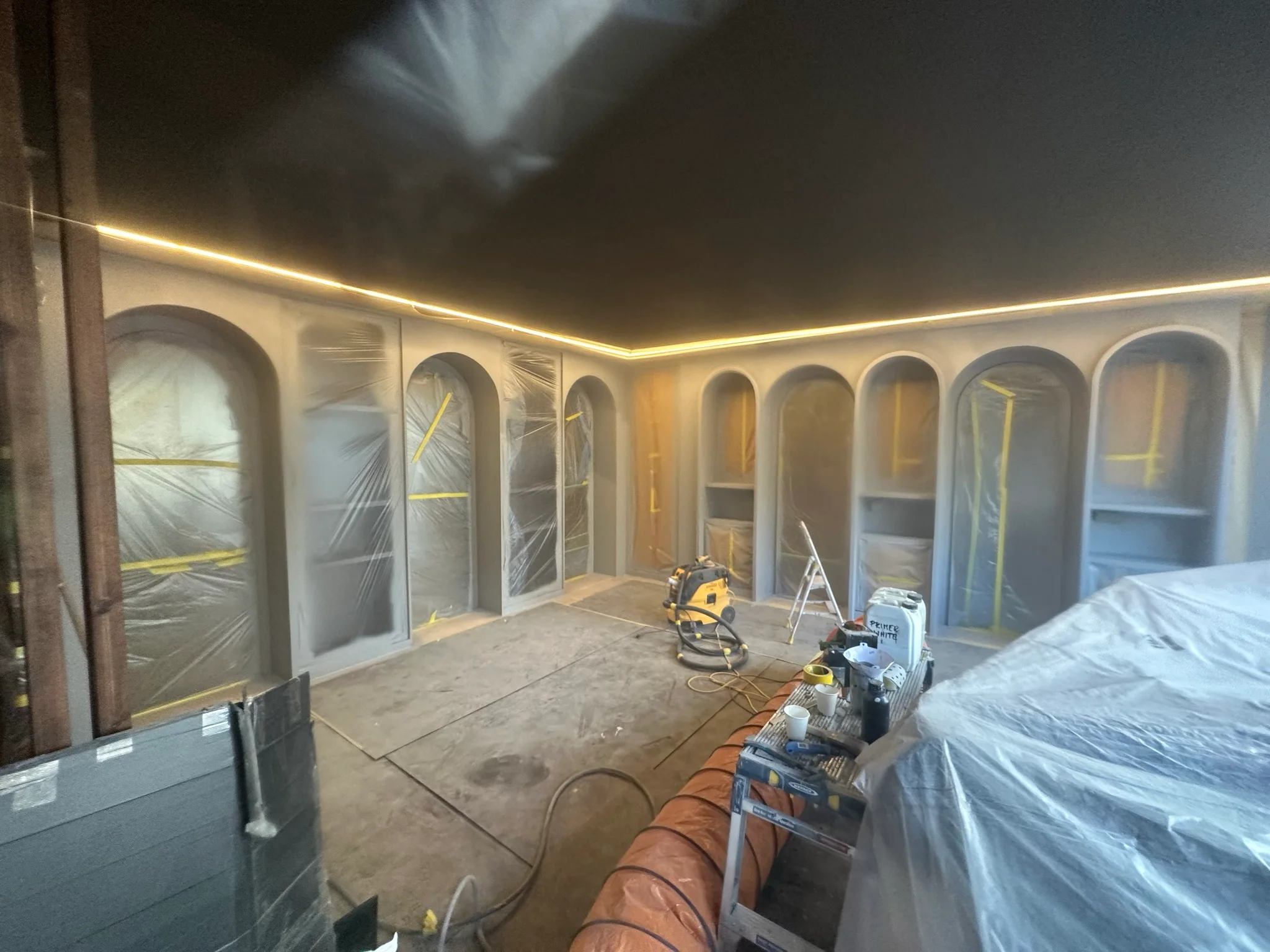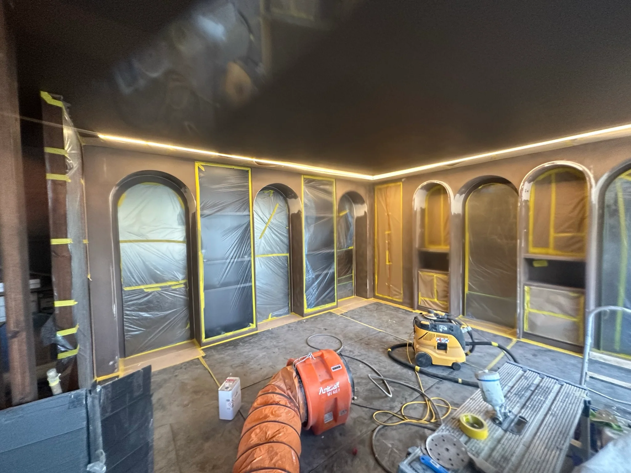 All gaps around each workstation were thoroughly prepared and filled, using a special corner tape for a smooth and durable finish.