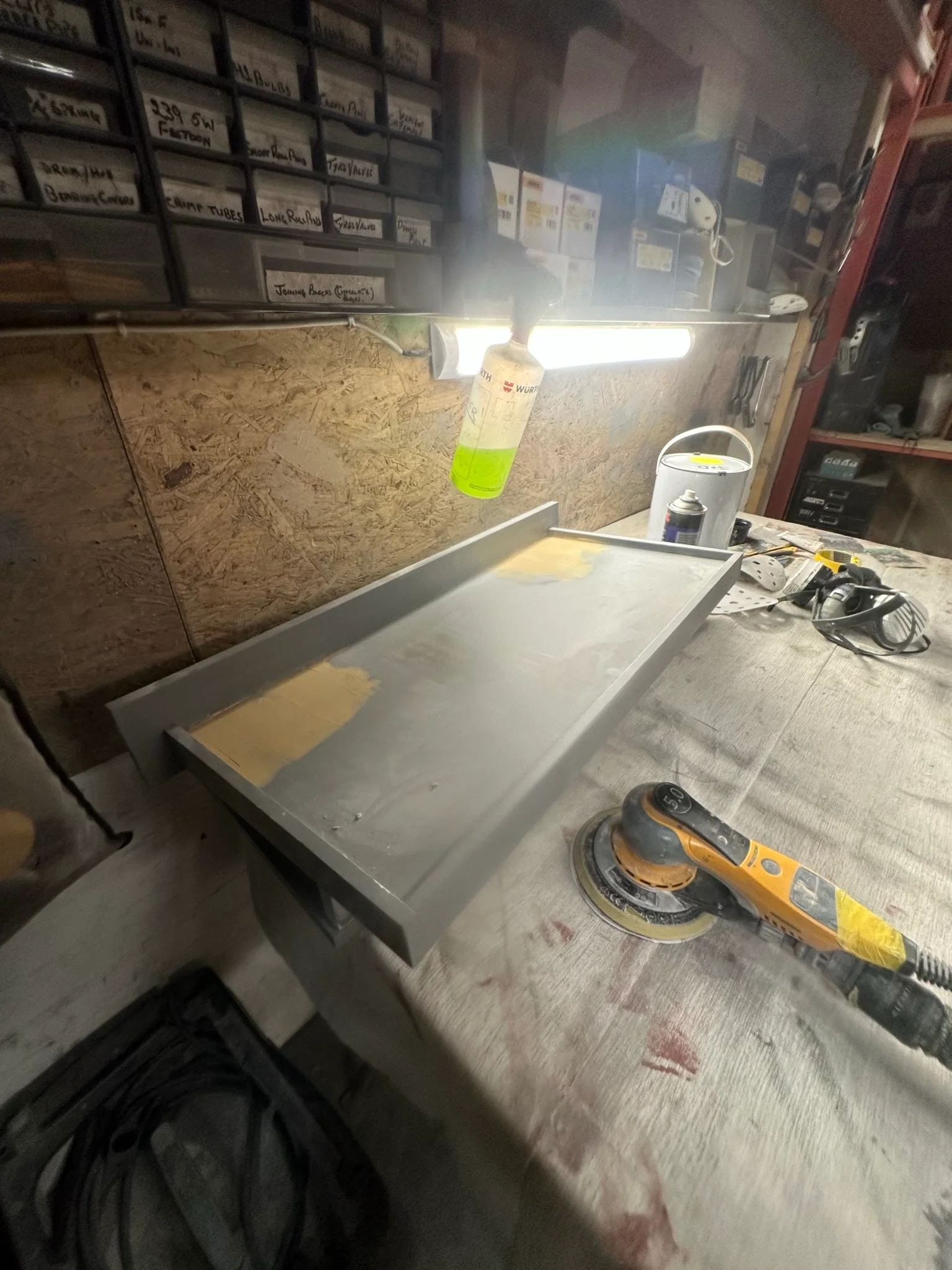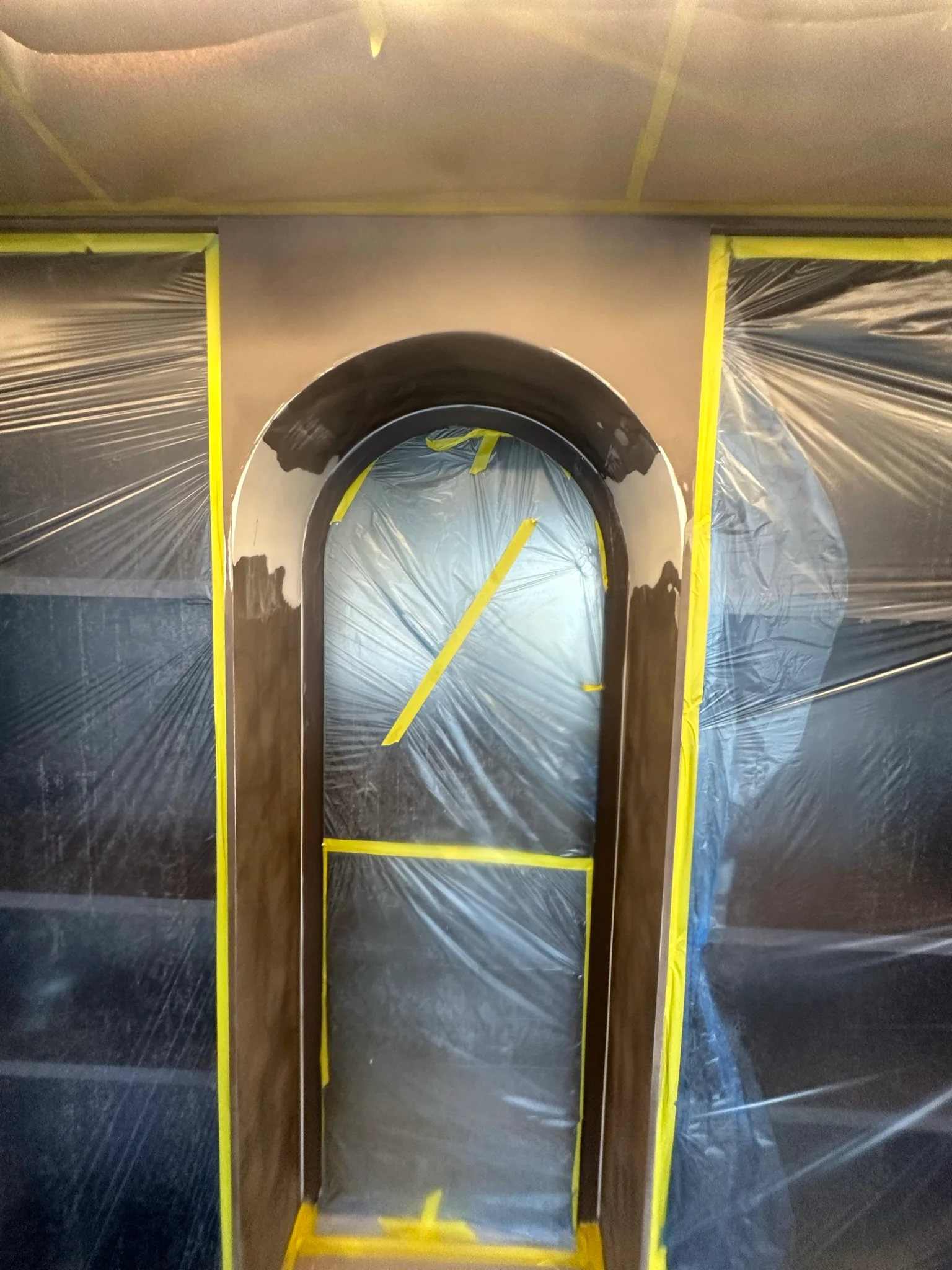 This project involved repairing uneven surfaces and fully respraying all elements in the same colour — Farrow & Ball No. 244 London Clay.