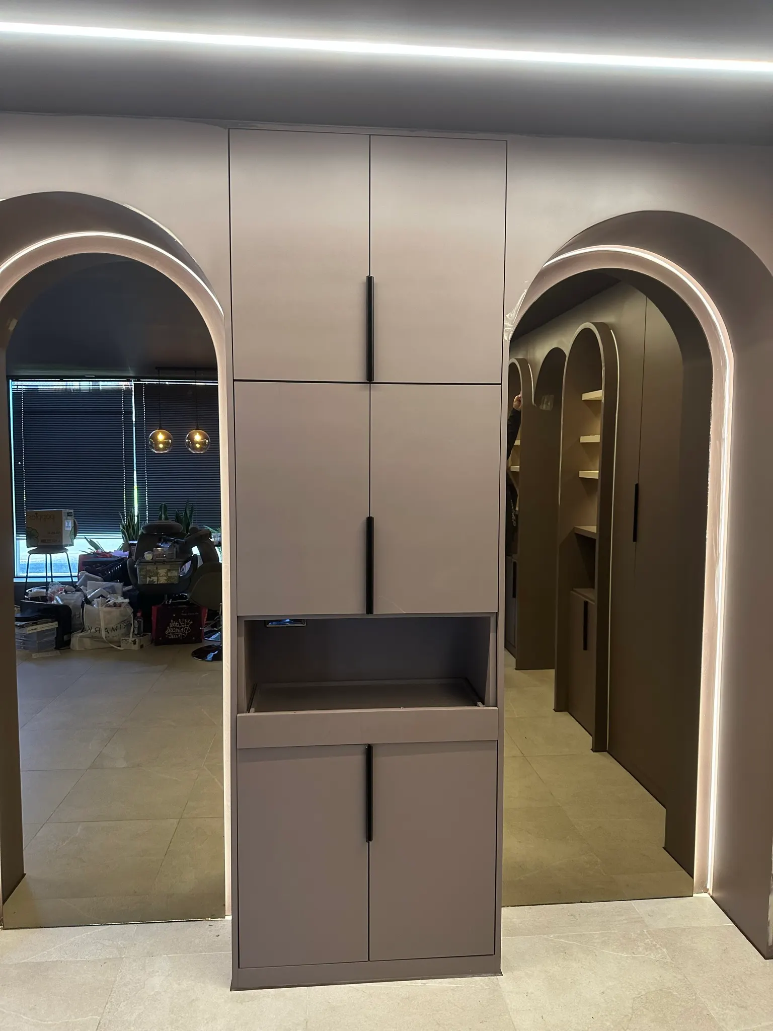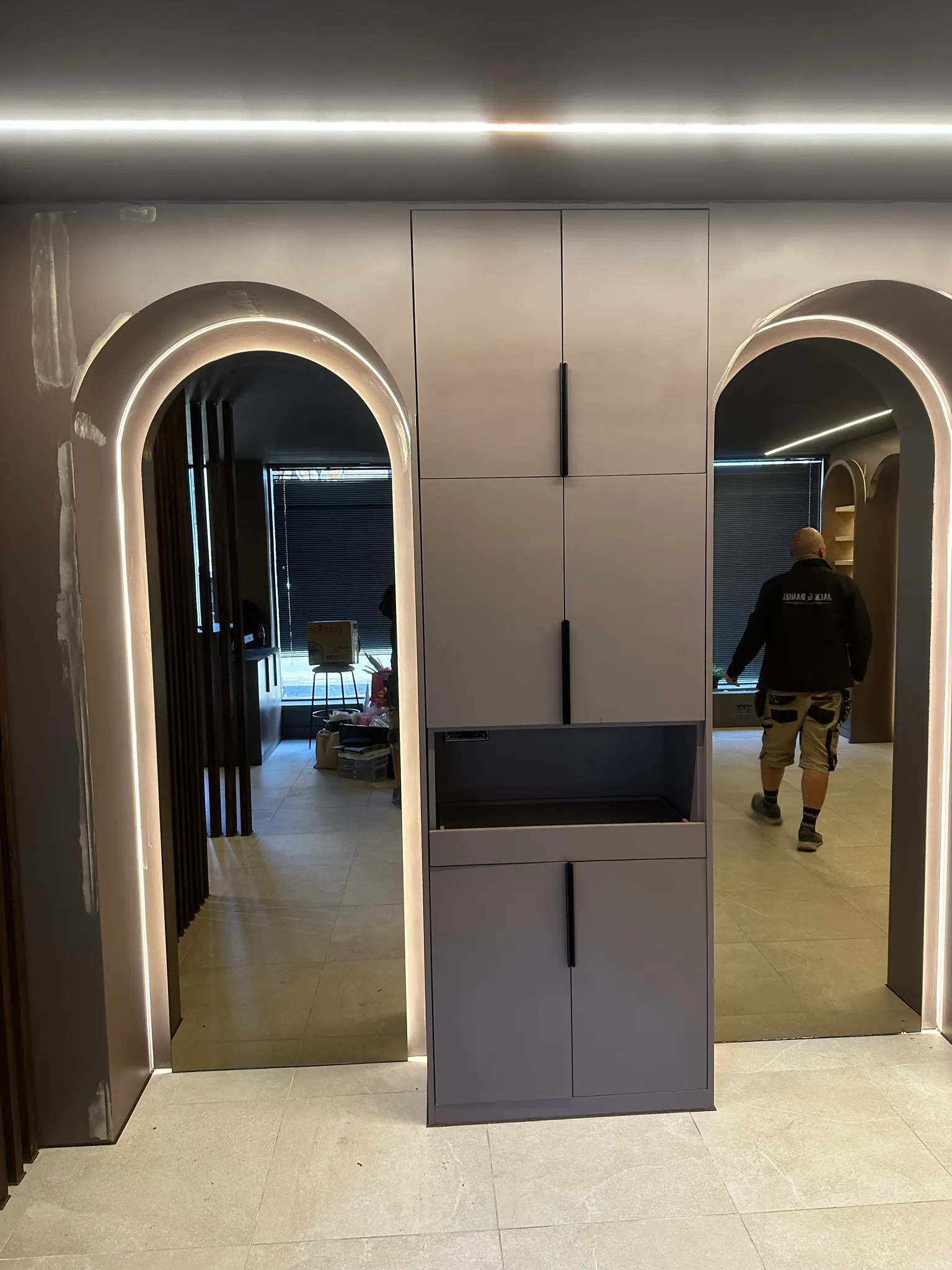 All cabinet fronts were spray-painted separately in our workshop spray booth and delivered a few days later for installation.