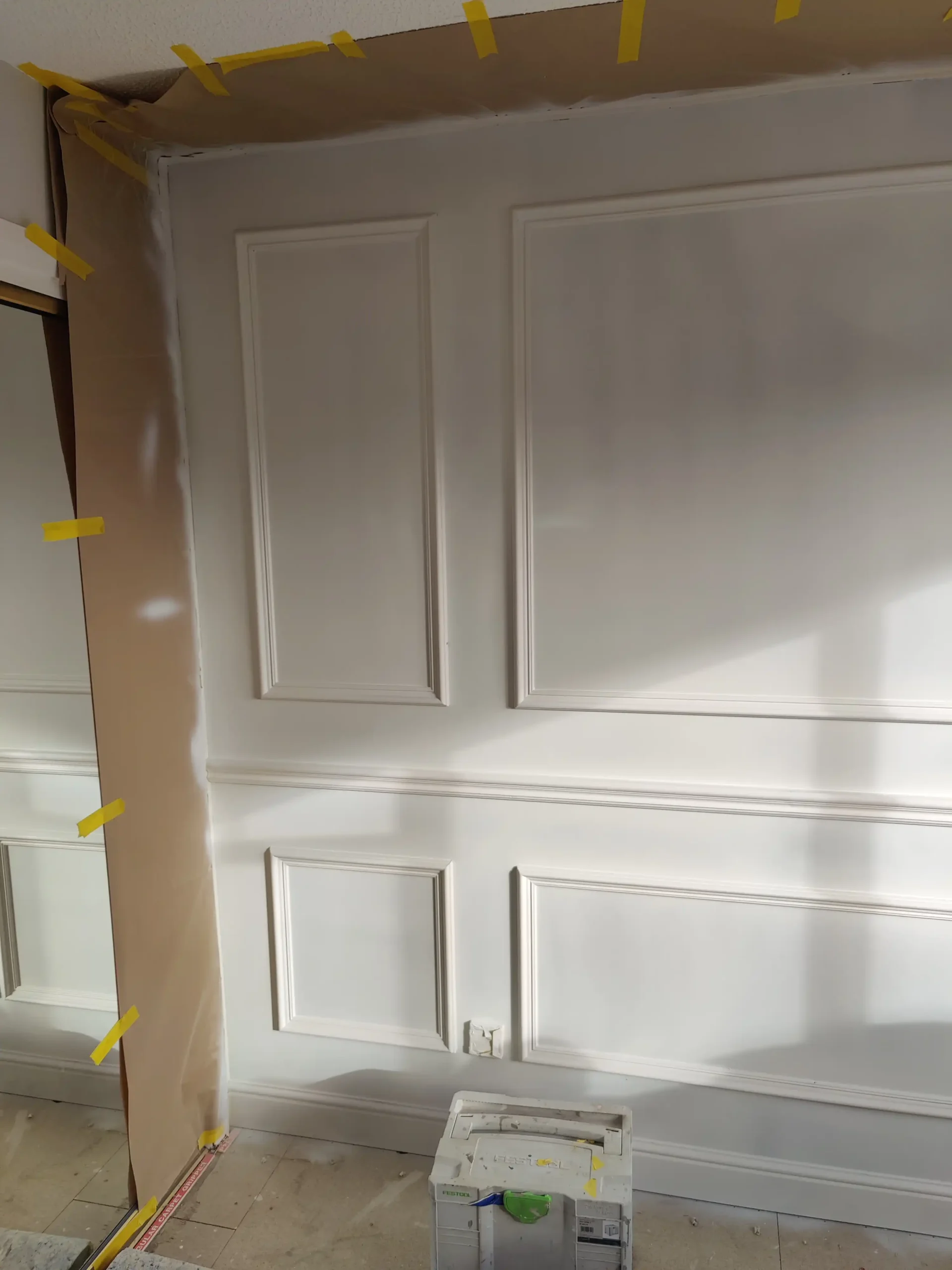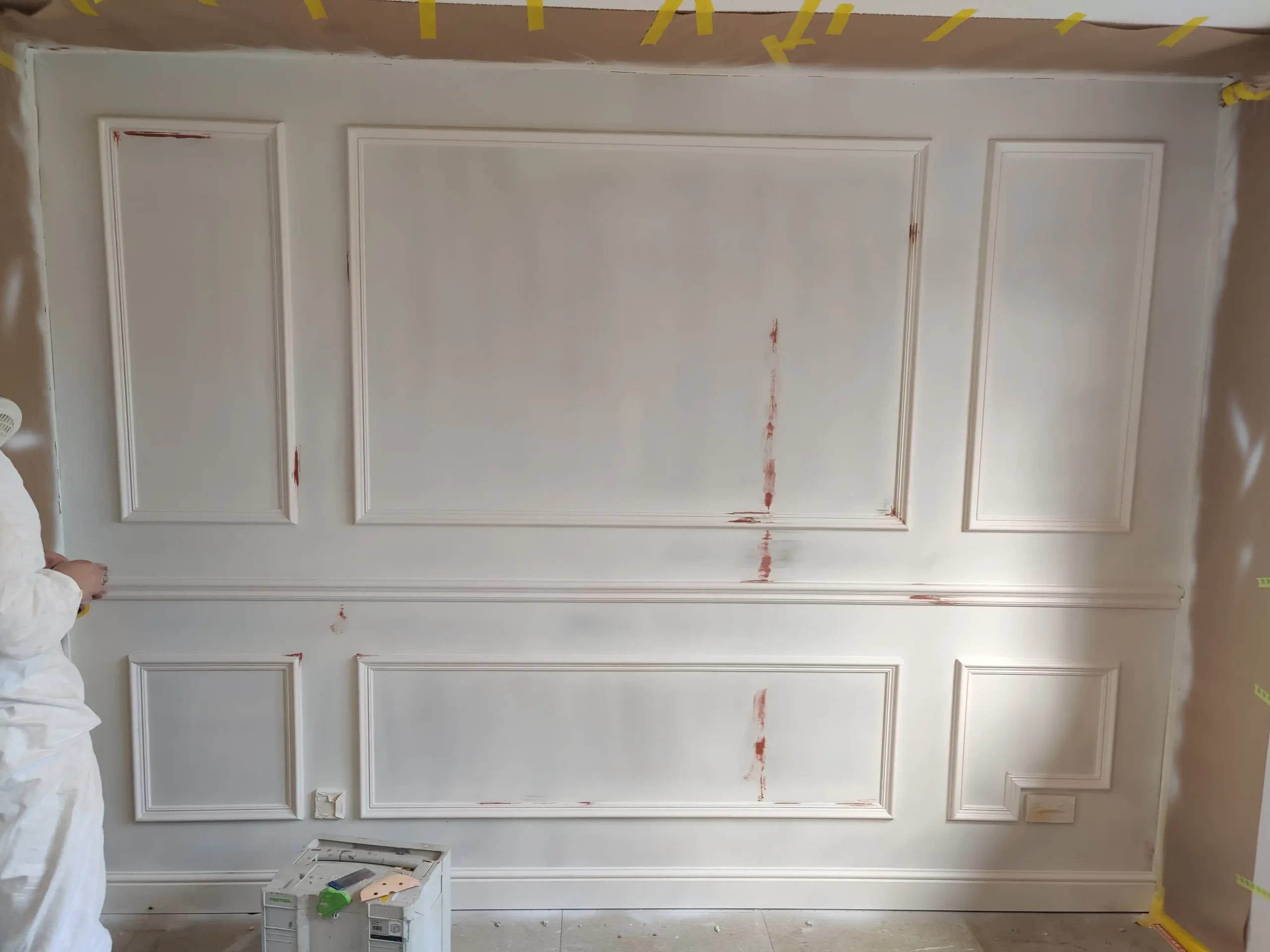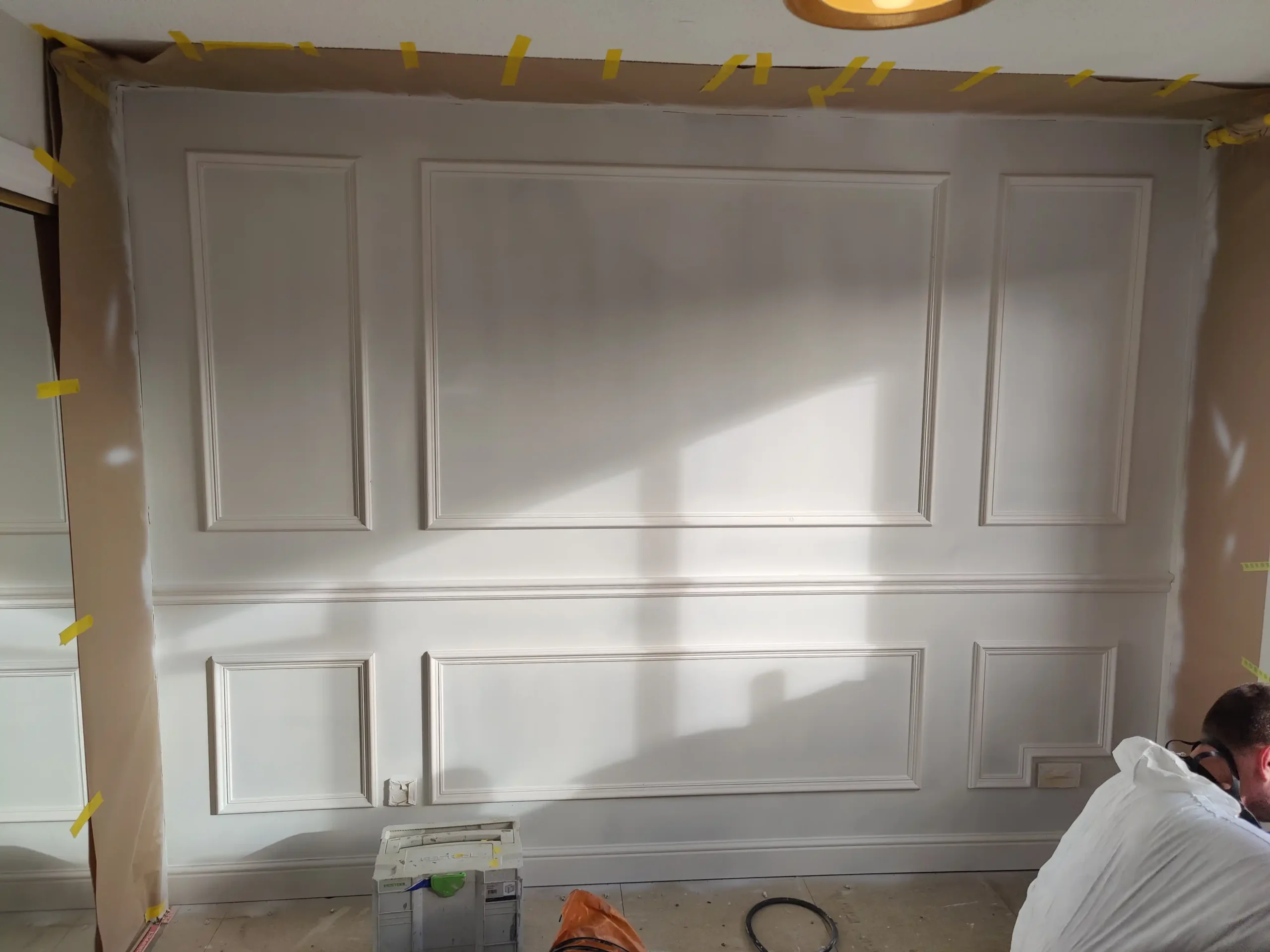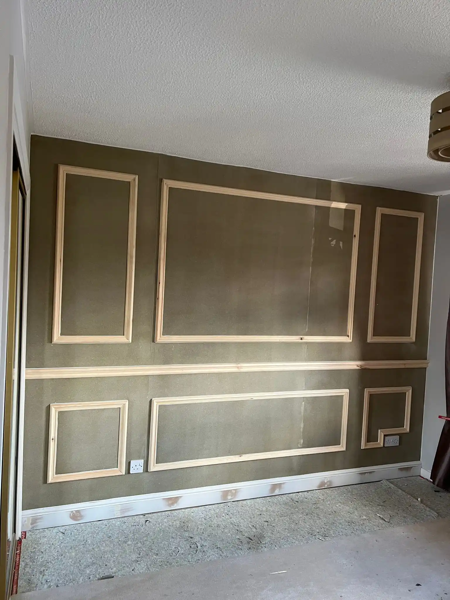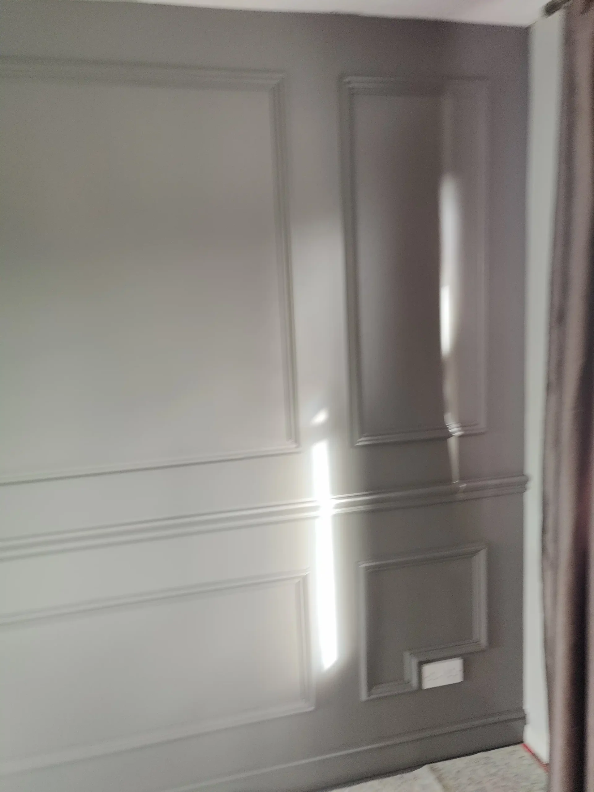 This project involved full wall panelling using 12mm moisture-resistant MDF, enhanced with decorative redwood beading to add depth and character. The entire surface was meticulously sanded and sealed before being professionally spray painted. We applied one coat of primer followed by two topcoats, resulting in a smooth, durable, and flawless finish. The chosen colour – Farrow & Ball Molesbreath in a refined 10% sheen – brought a timeless, elegant look that complements the surrounding interior beautifully.